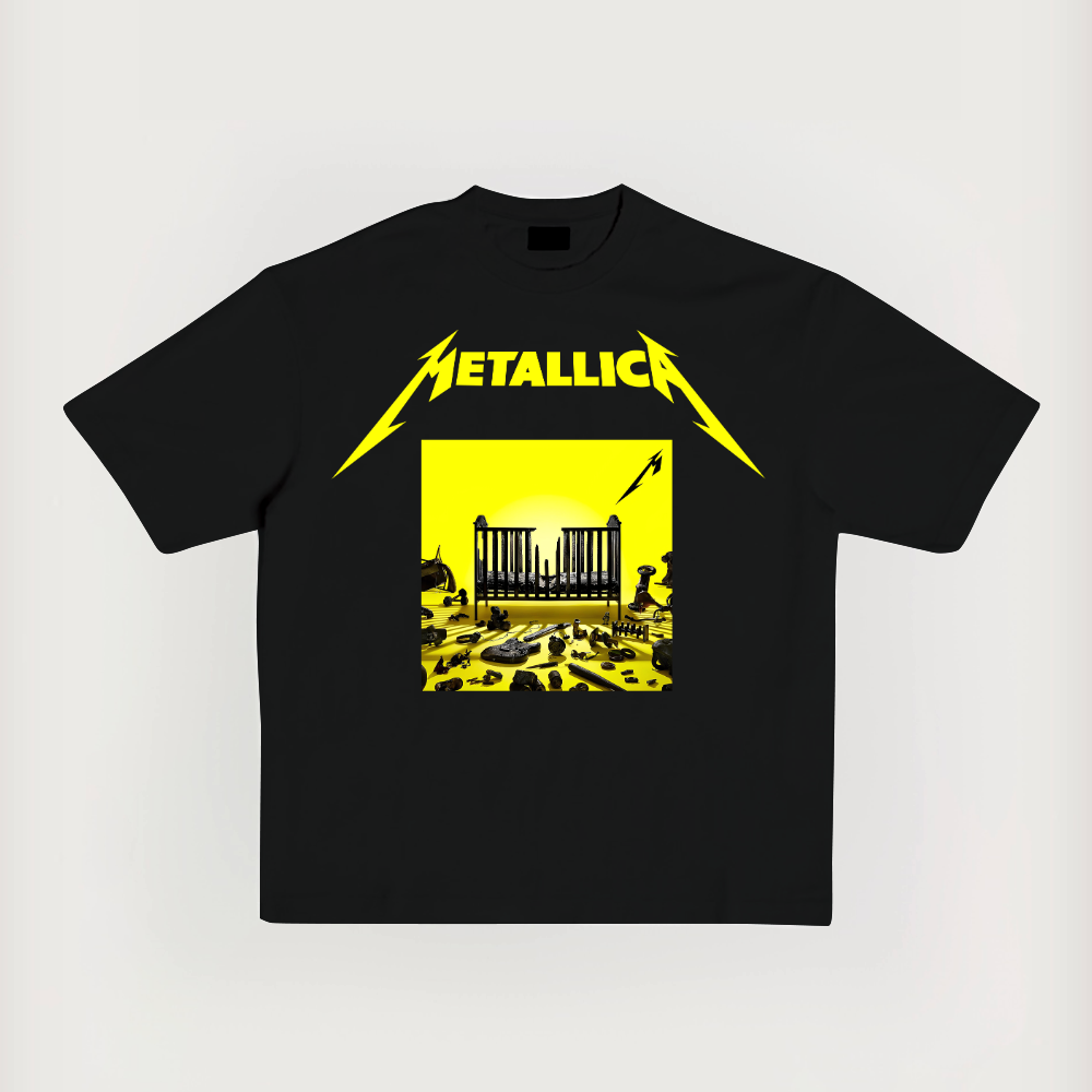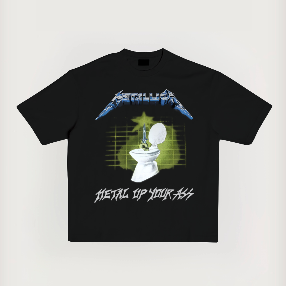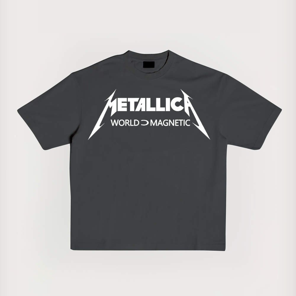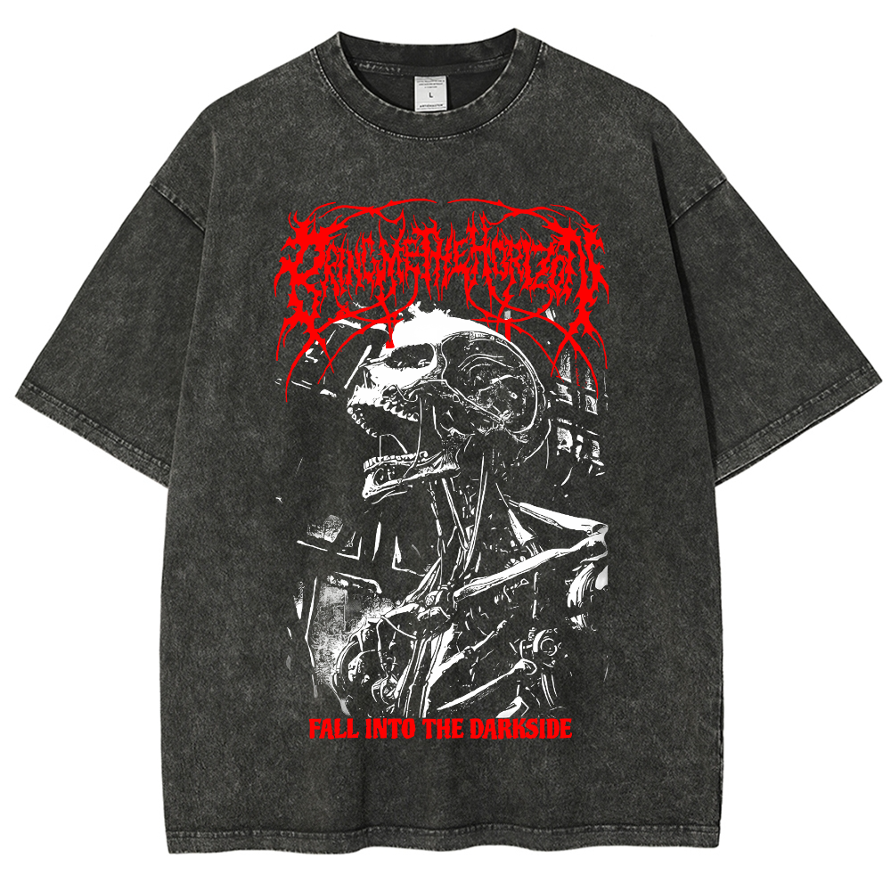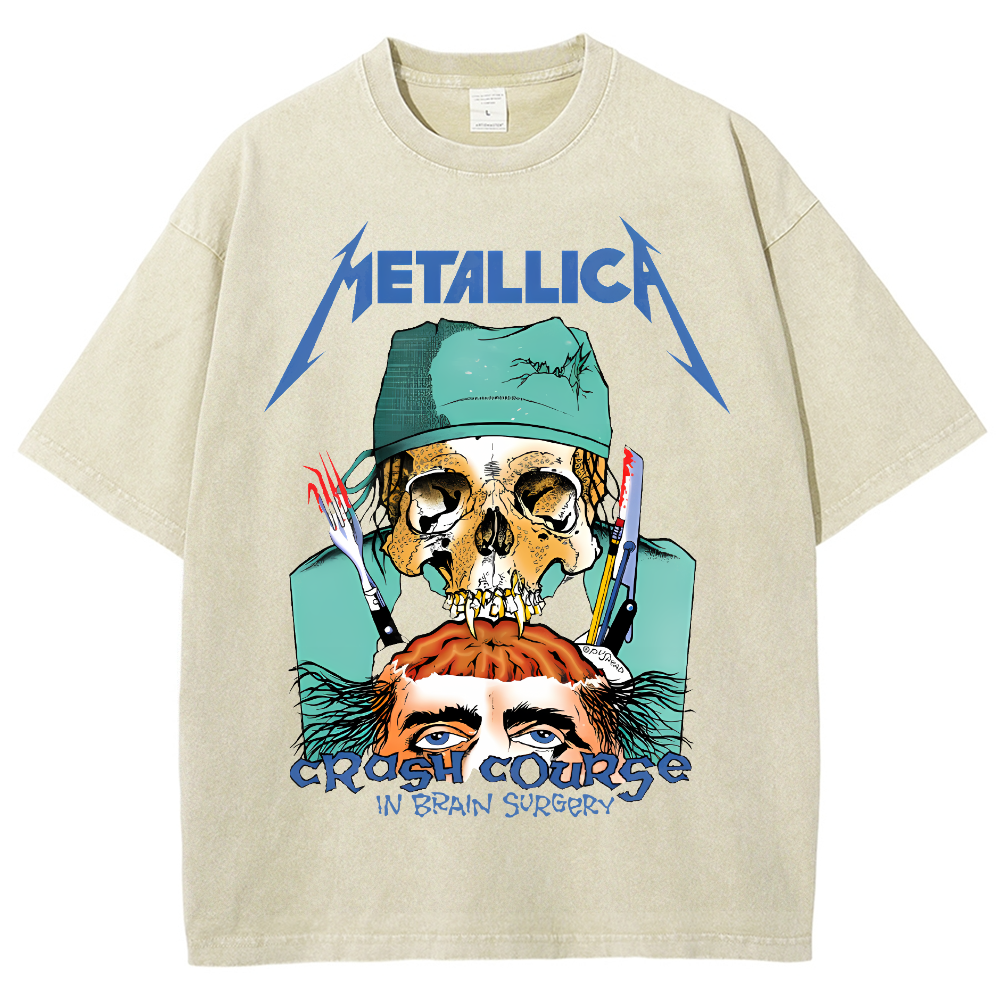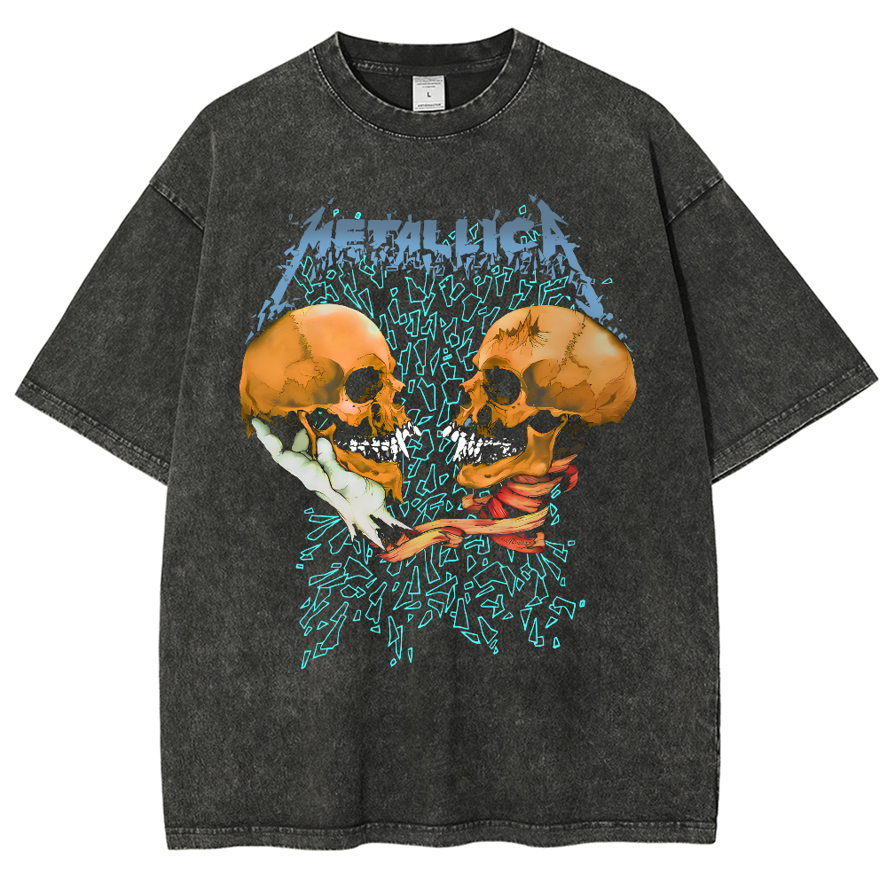 Metal Unique Print Short-Sleeved Washed T-Shirt