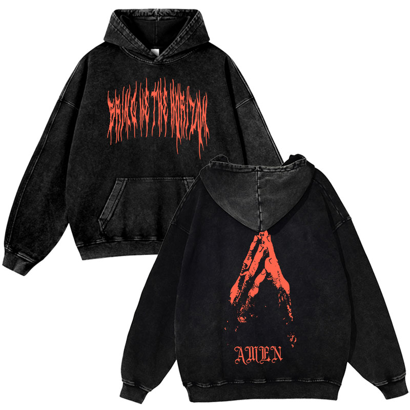 Metal Unique Print Unisex Fit Vintage Washed Hoodie