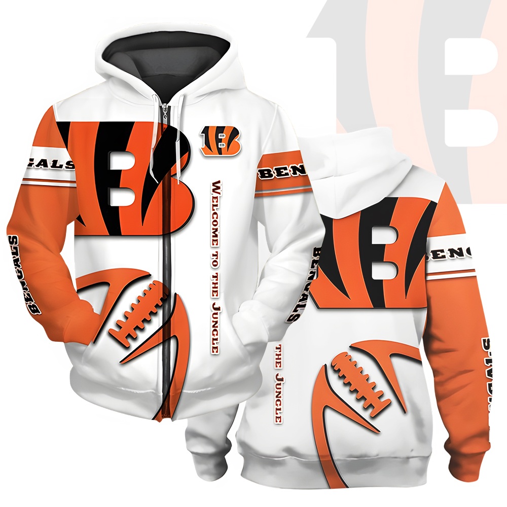 Unisex Cincinnati Bengals Printed Hoodie – Bold Zip Up Sweatshirt for Fans