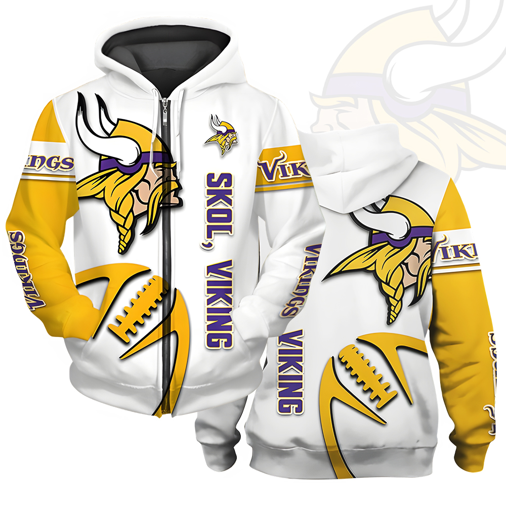 Unisex Minnesota Vikings Printed Hoodie – Bold Zip Up Sweatshirt for Fans