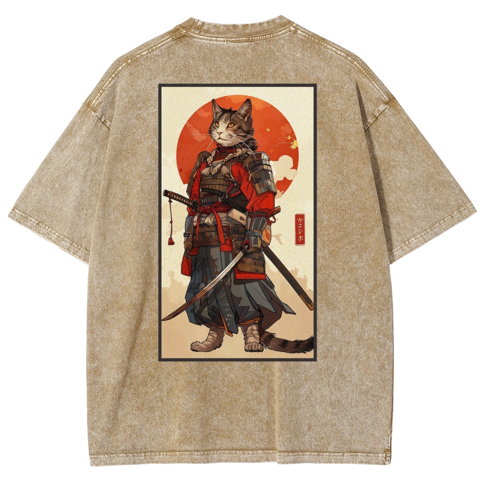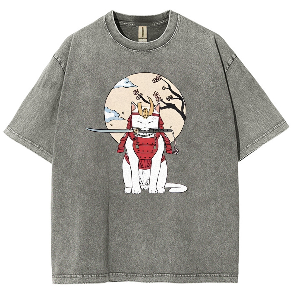 Casual Warrior Cat Washed Vintage Short Sleeves T-Shirt