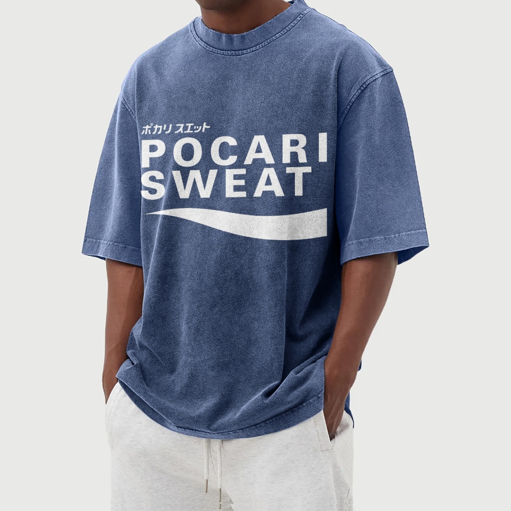 POCARI SWEAT Logo Washed Vintage Short Sleeves T-Shirt