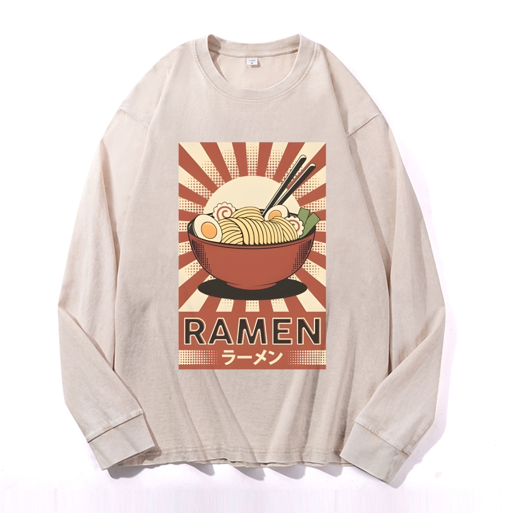 Japanese Ramen Pattern Deep Washed Vintage Long Sleeves T-Shirt