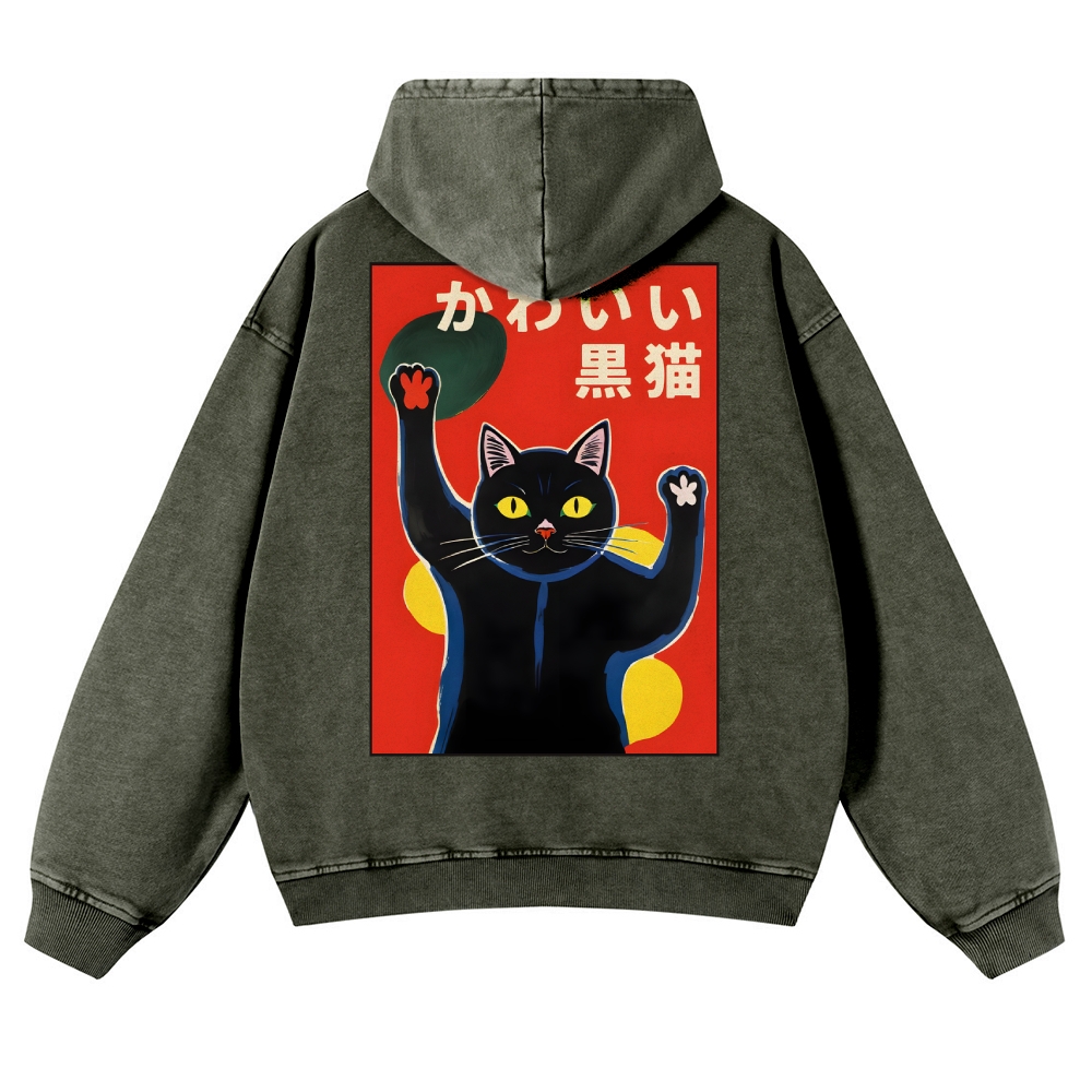 Japanese Warrior Cat Ukiyoe Vintage Washed Hoodie