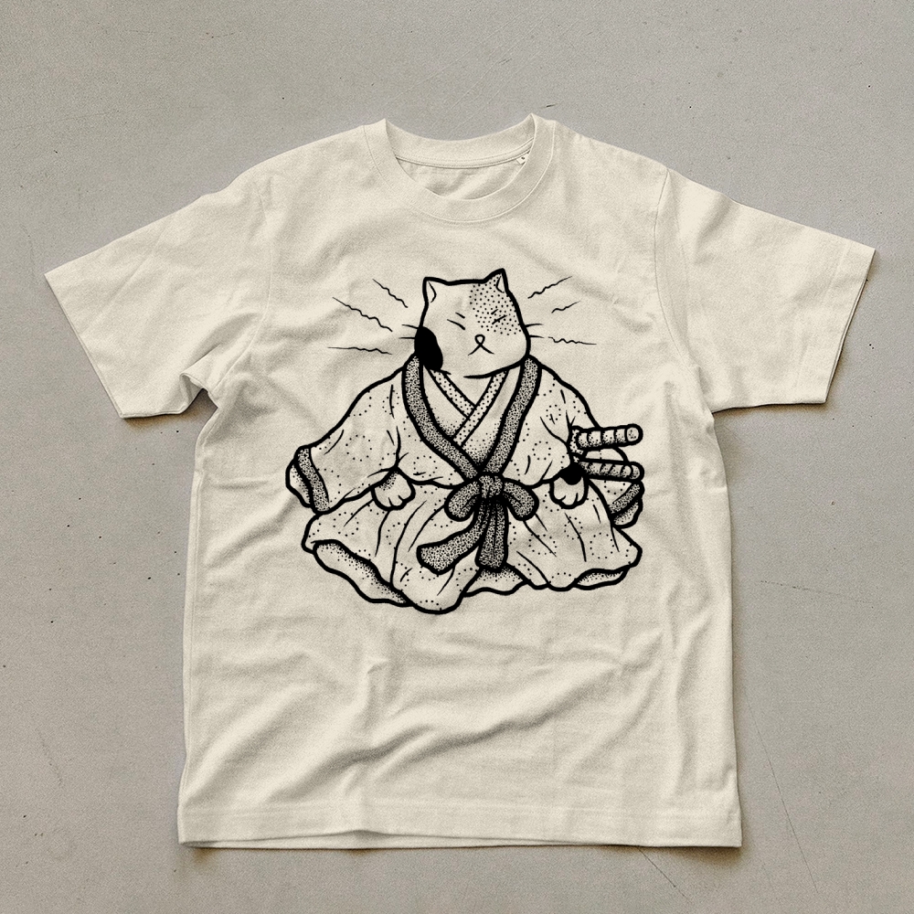 White Cat Warrior Washed Vintage Short Sleeves T-Shirt