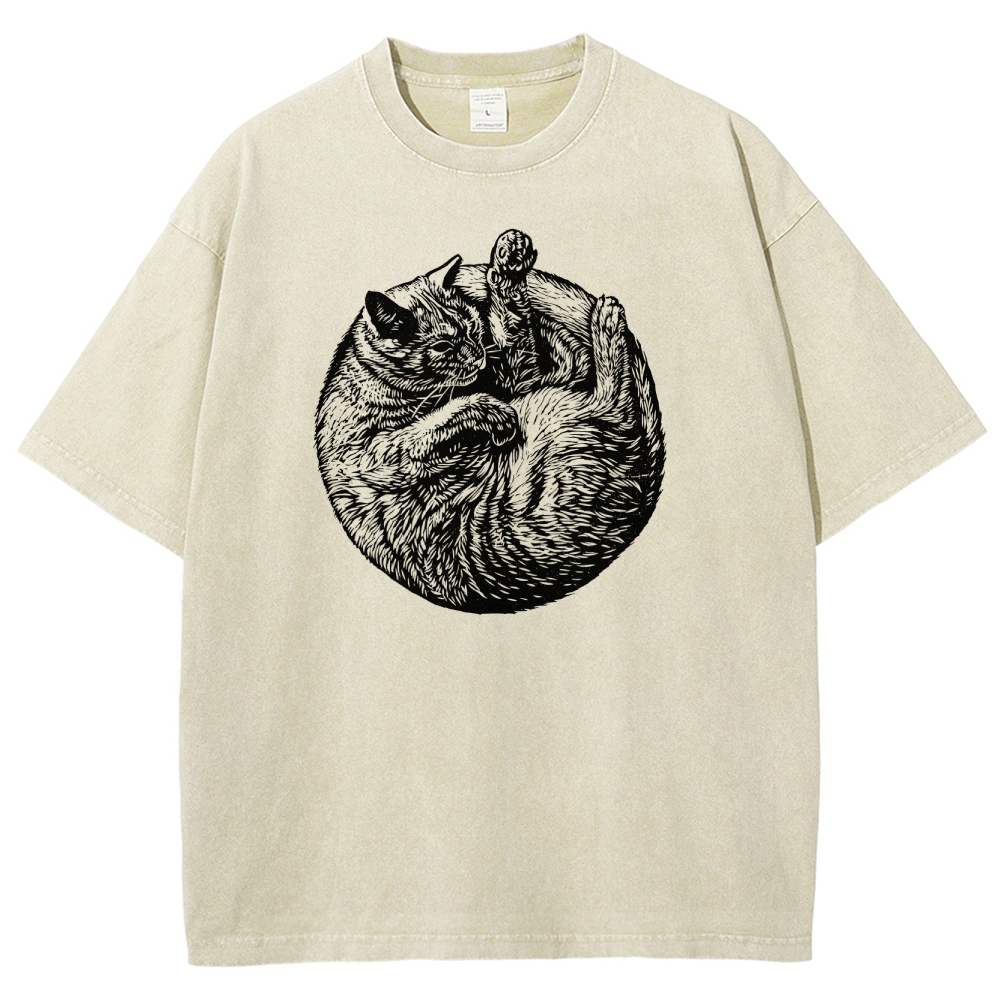 A Cat Circle Washed Vintage Short Sleeves T-Shirt