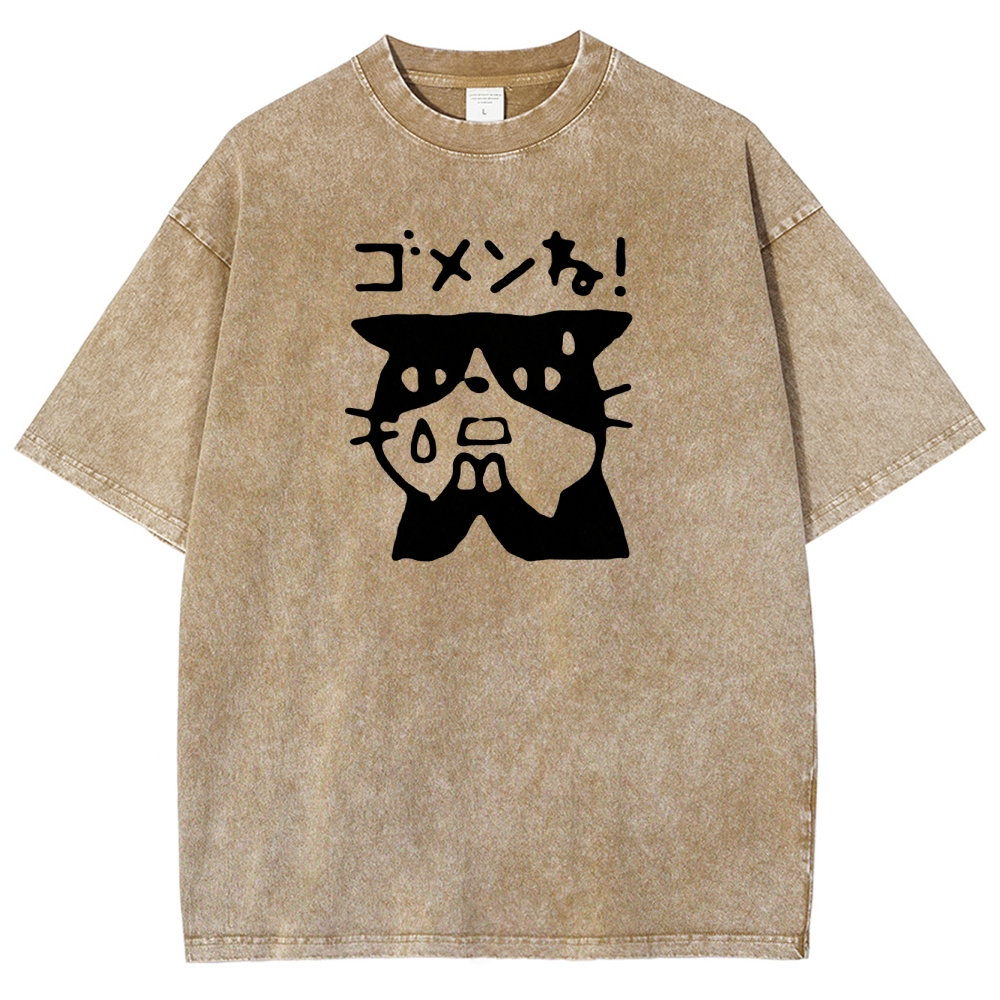 Japanese Cat Pattern Washed Vintage Short Sleeves T-Shirt