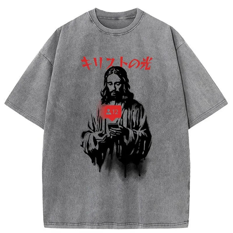 Hero Story Pattern Washed Vintage Short Sleeves T-Shirt