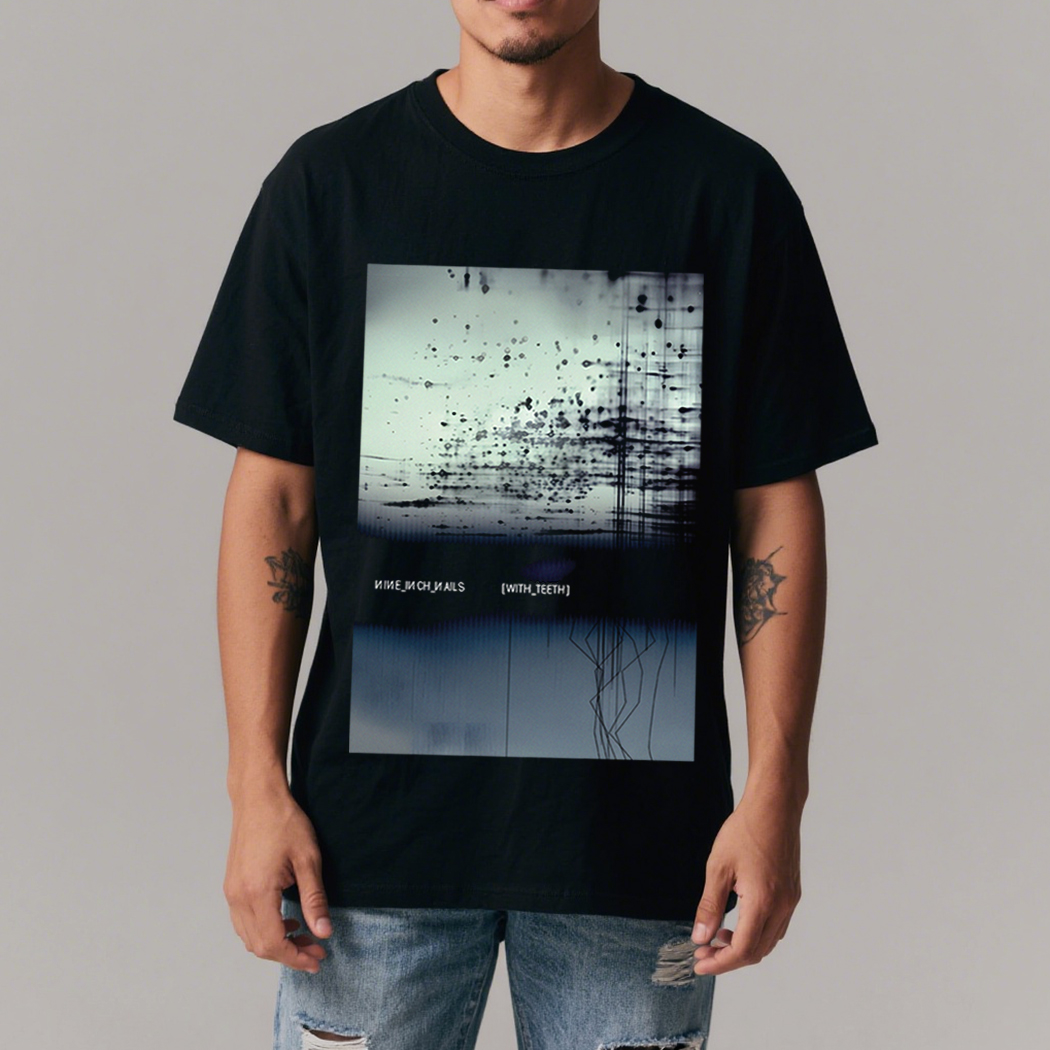 NIN Nine Inch Nails Metal Pattern Printed Short-Sleeved T-Shirt