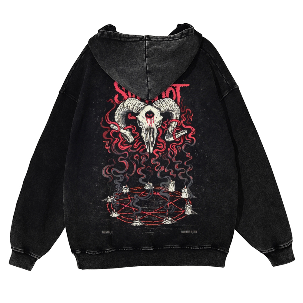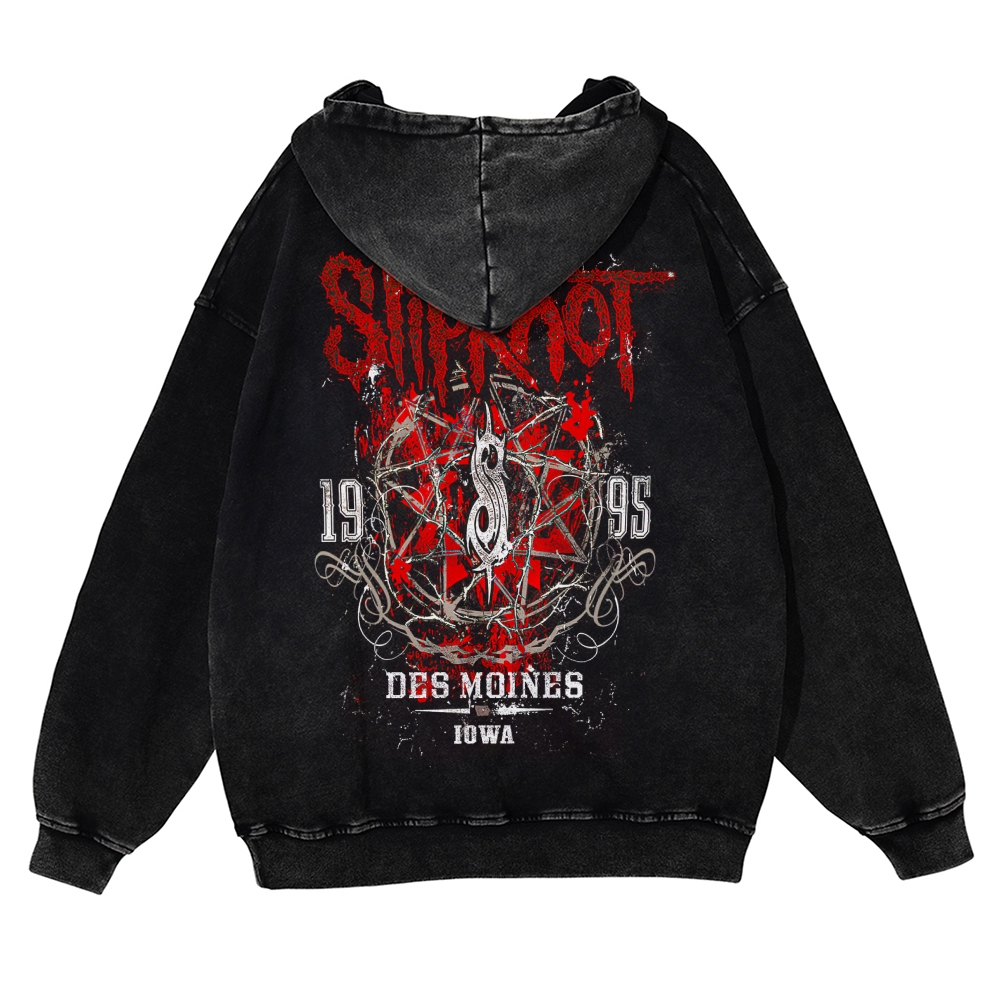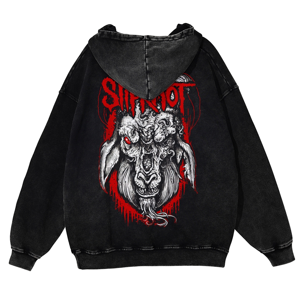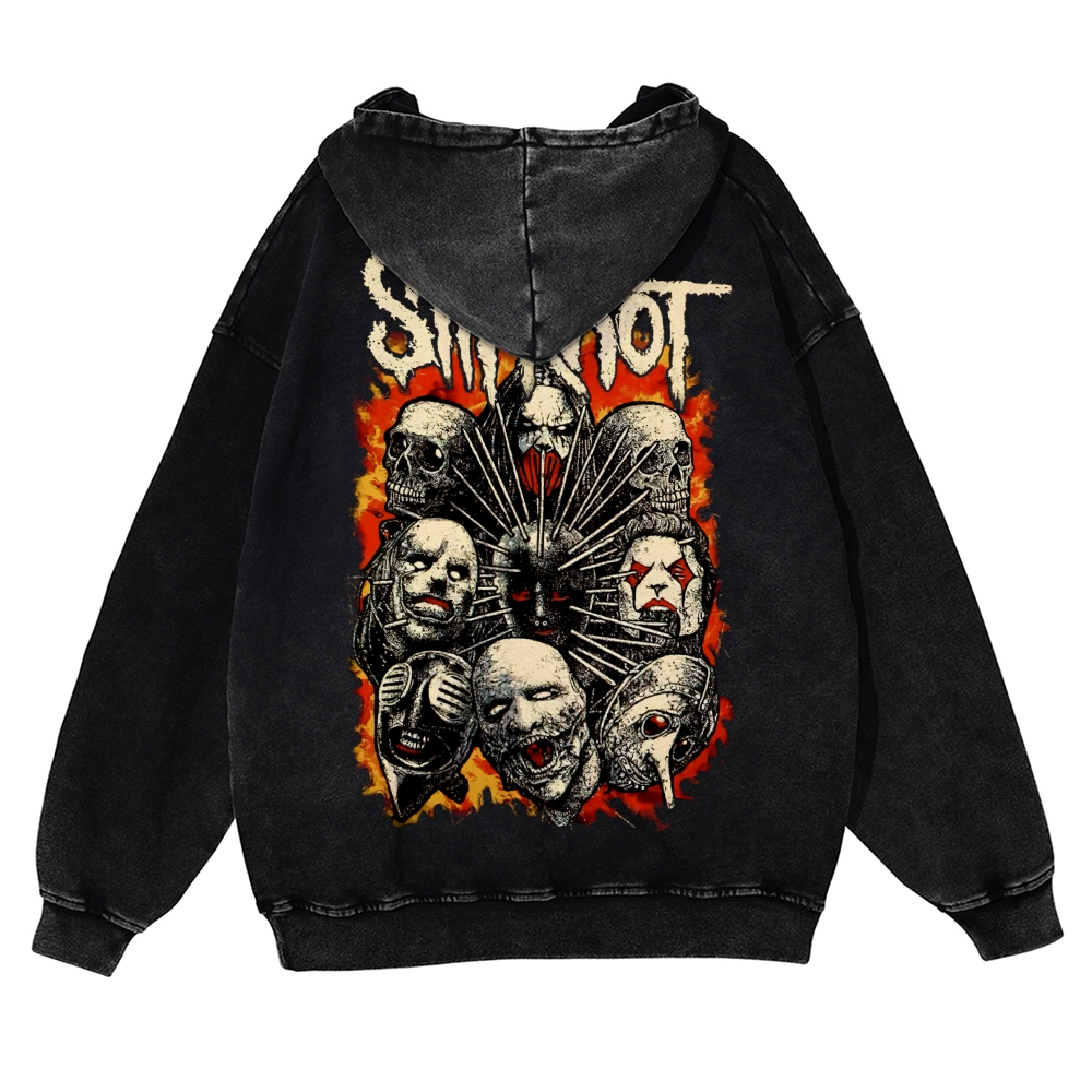 Unisex Vintage SlipKnot Band Washed Cotton Zipper Hooded Sweatshirt