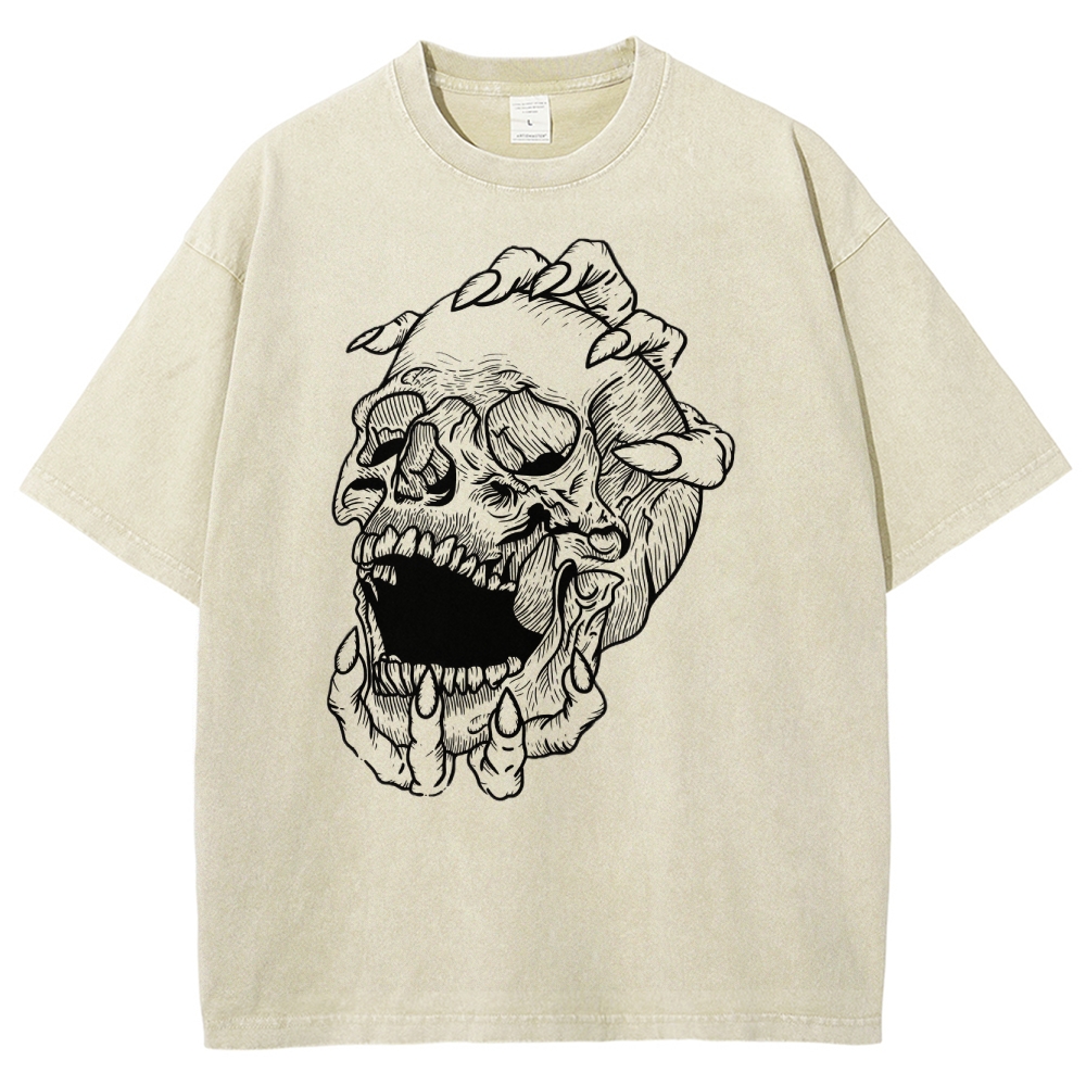 Skull Pattern Prints Washed Vintage Short Sleeves T-Shirt