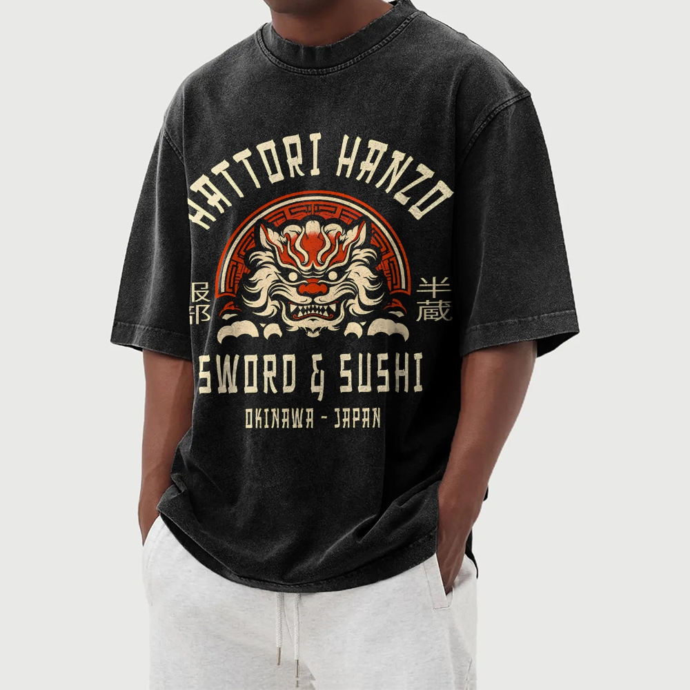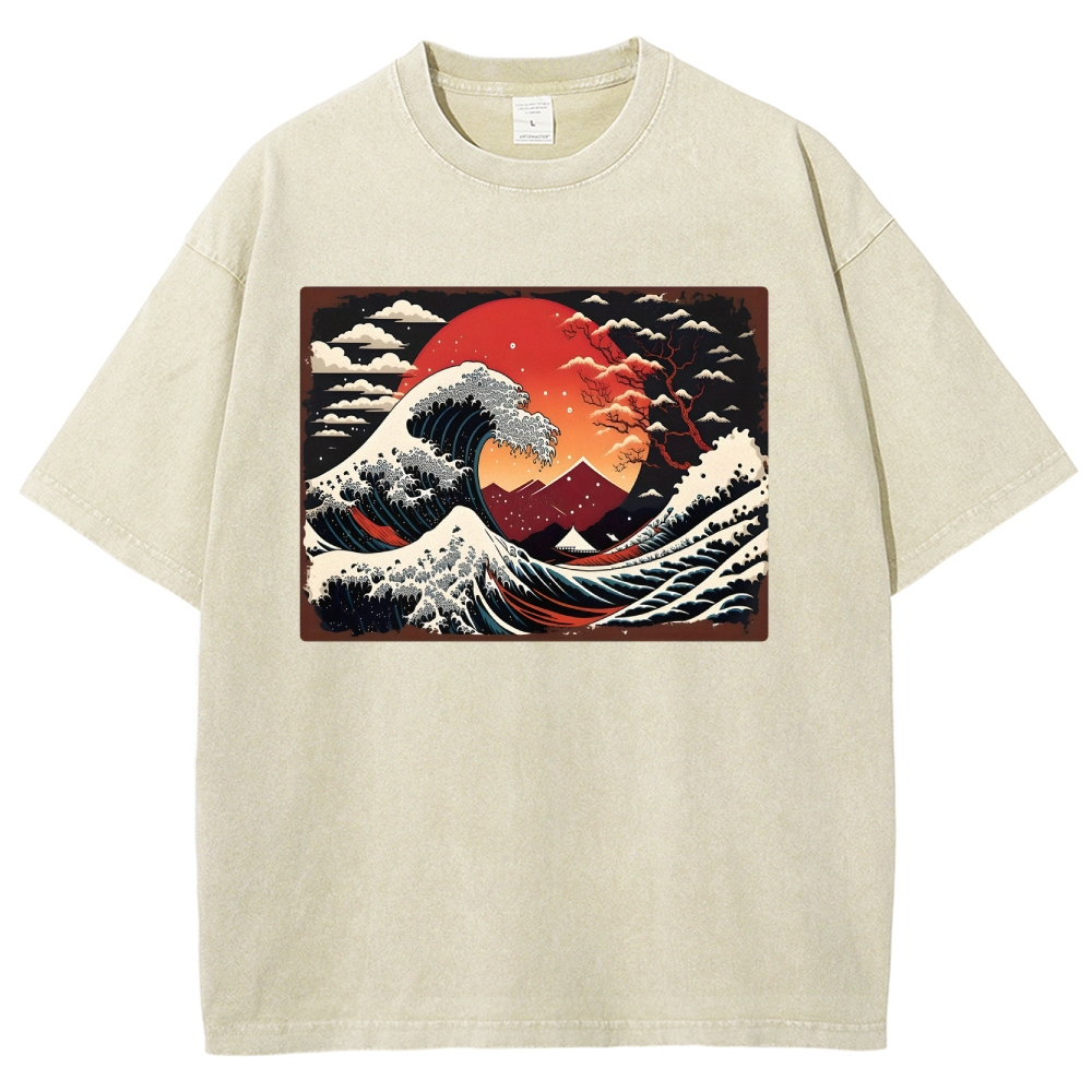 Japanese Element Washed Vintage Short Sleeves T-Shirt