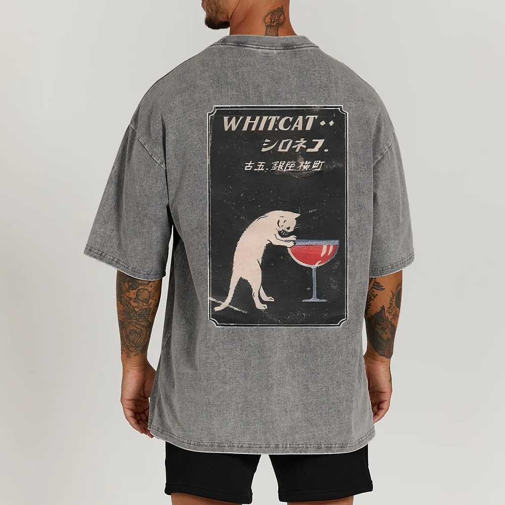 Biting Cat Washed Vintage Short Sleeves T-Shirt