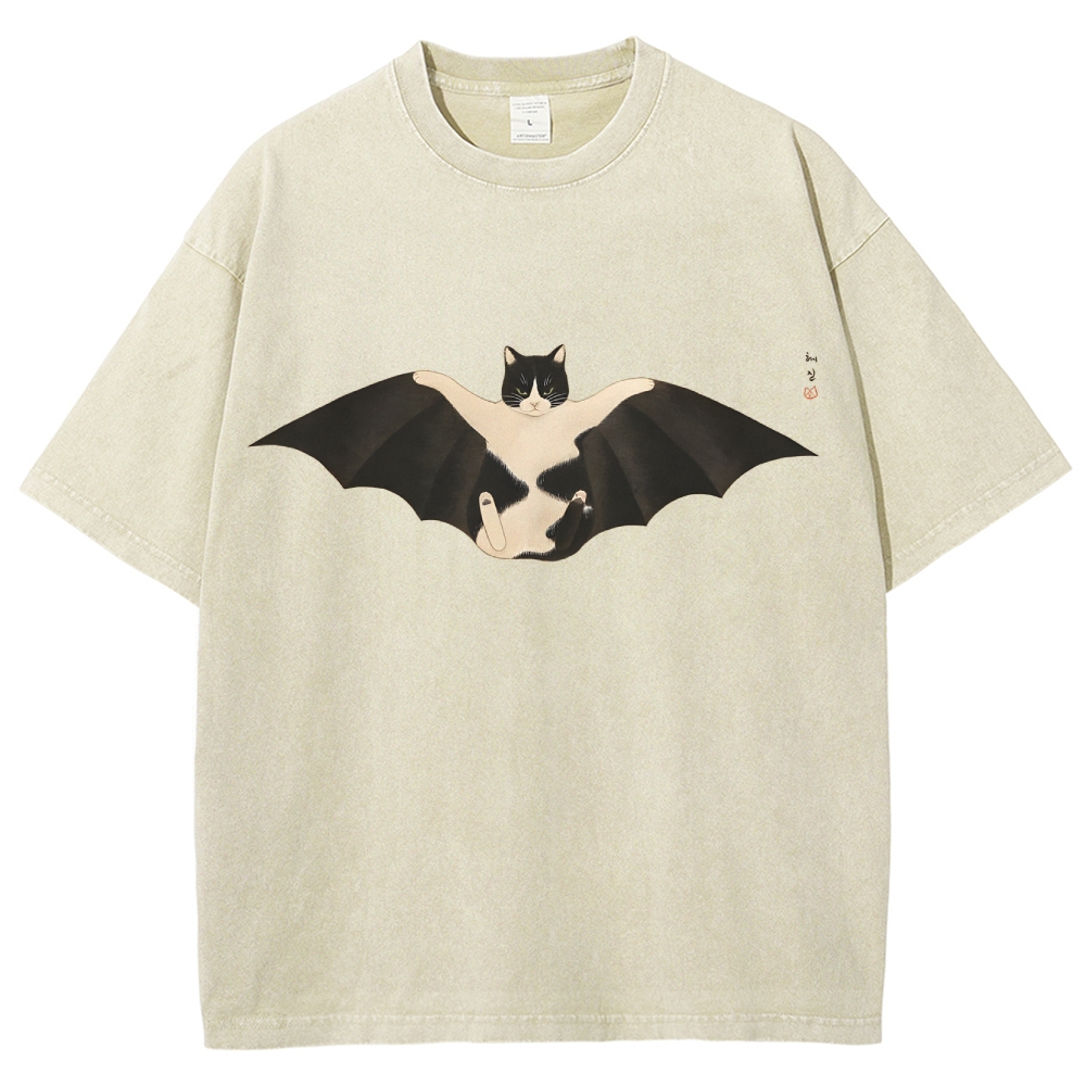Bat Cat Washed Vintage Short Sleeves T-Shirt
