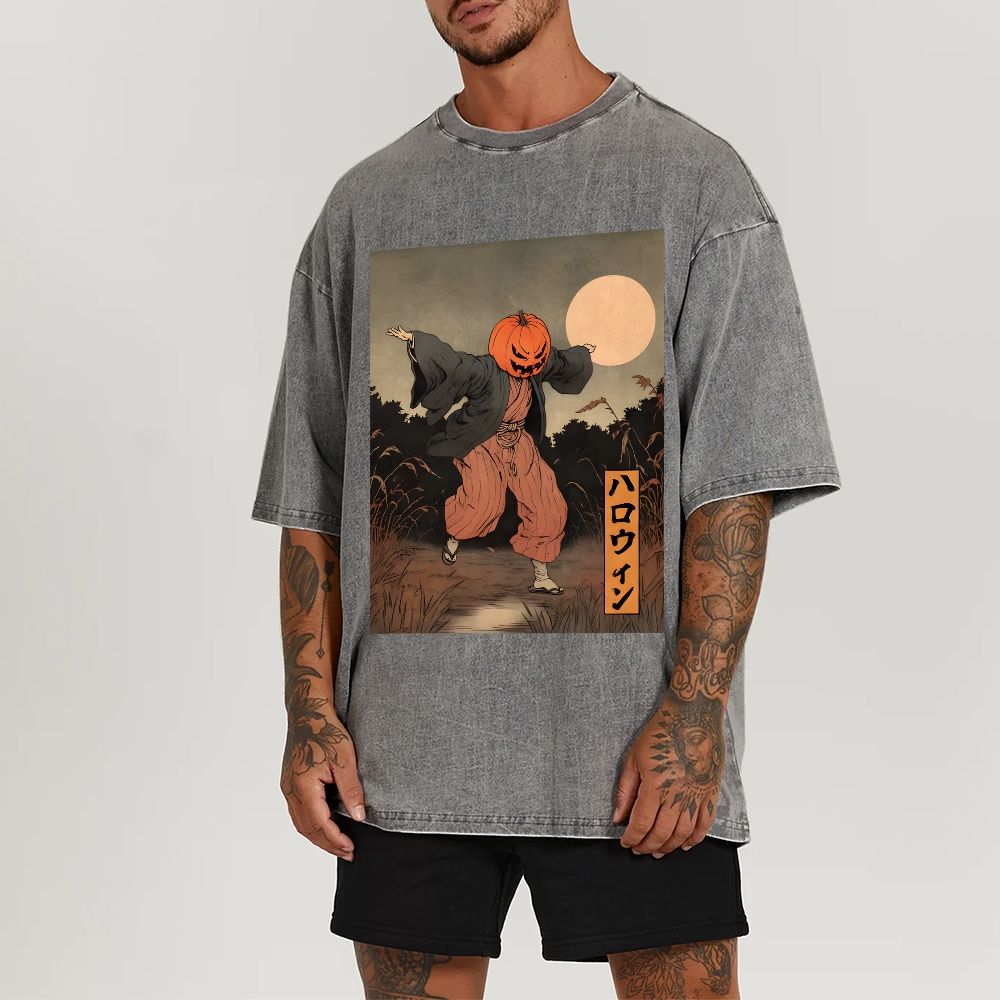 Pumpkin Man Washed Vintage Short Sleeves T-Shirt