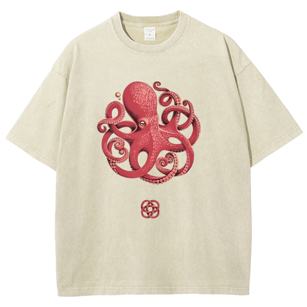 Octopus Totem Washed Vintage Short Sleeves T-Shirt