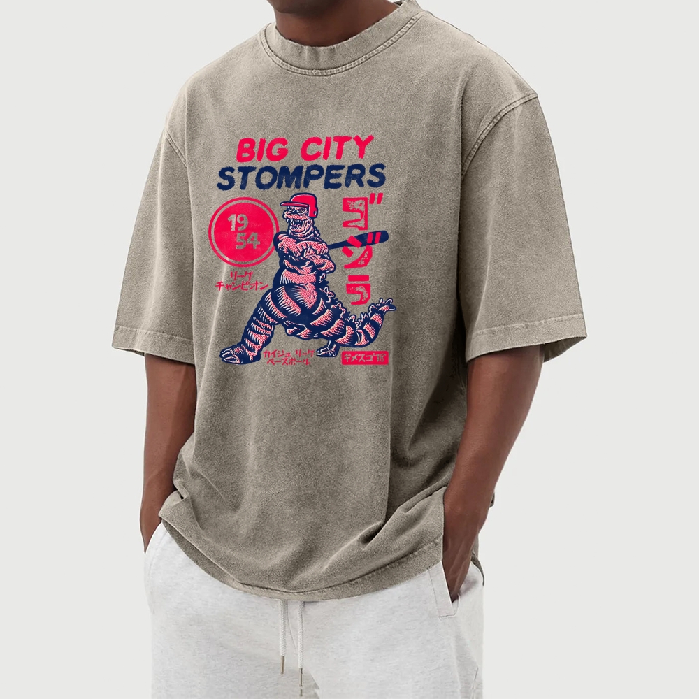 Baseball Godzilla Washed Vintage Short Sleeves T-Shirt