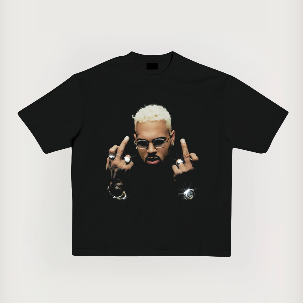 Chris Brown Big Face Printed Short-Sleeved T-Shirt