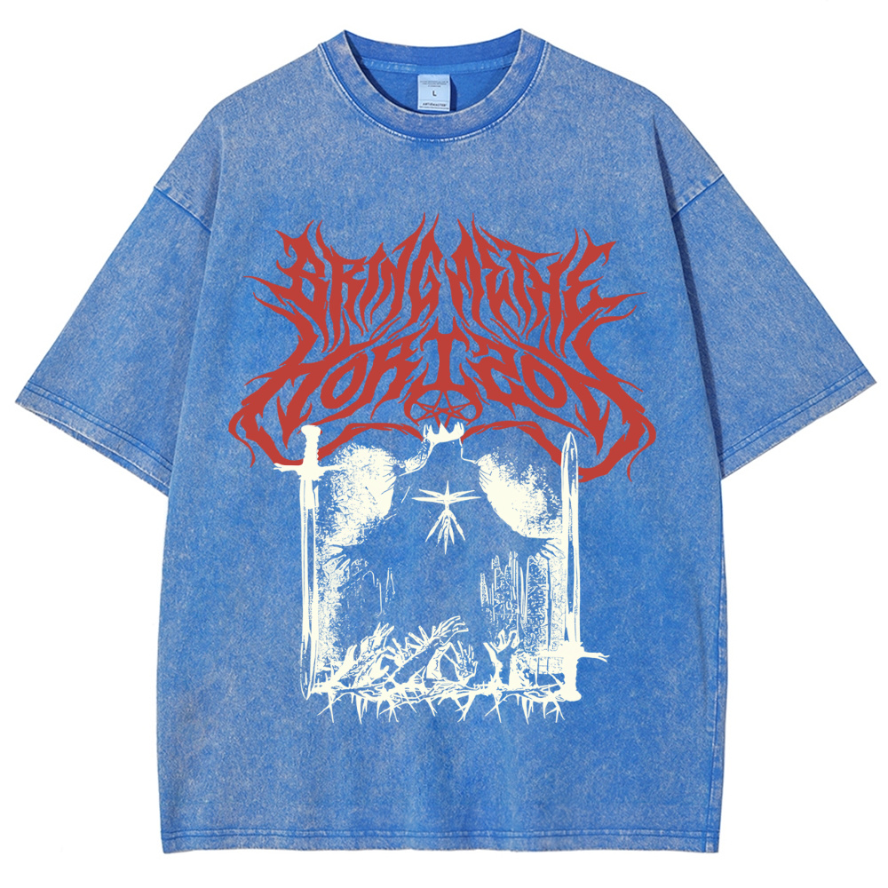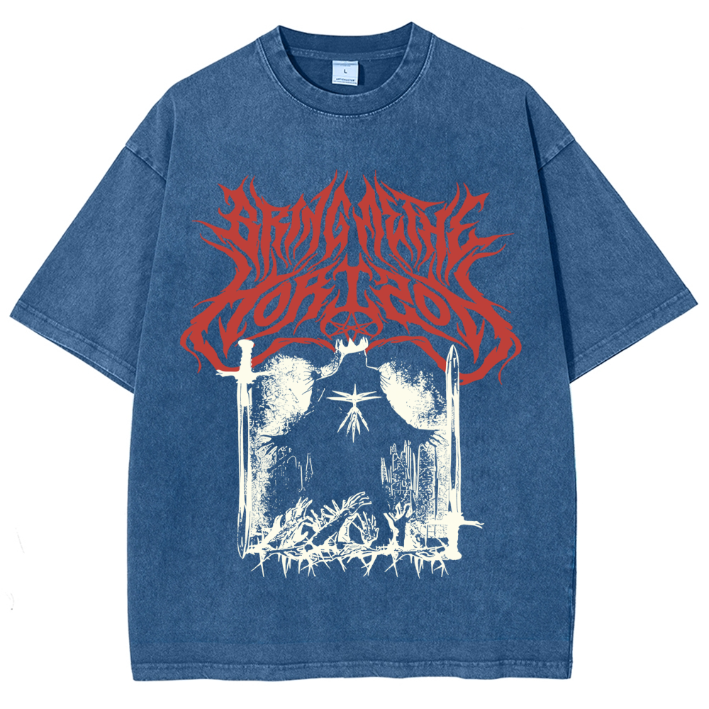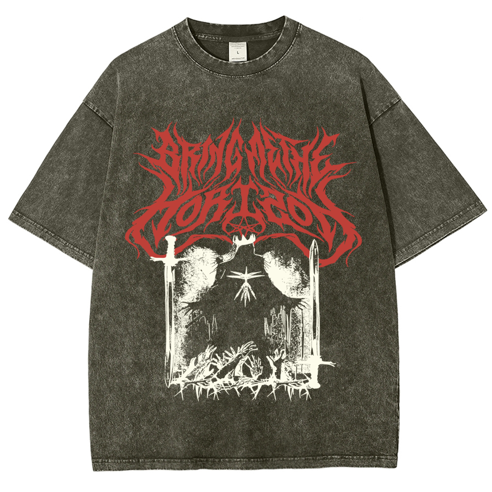 "Metal Unique Print" Printed Short-Sleeved Washed T-Shirt