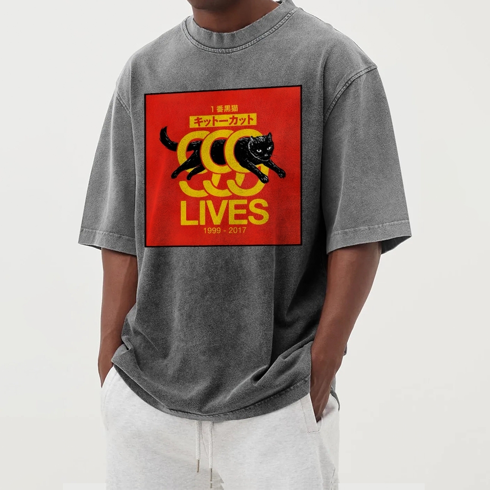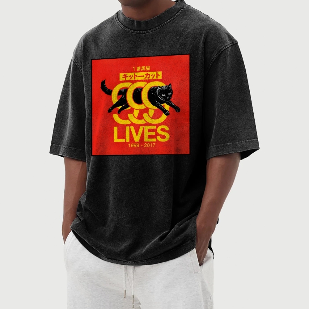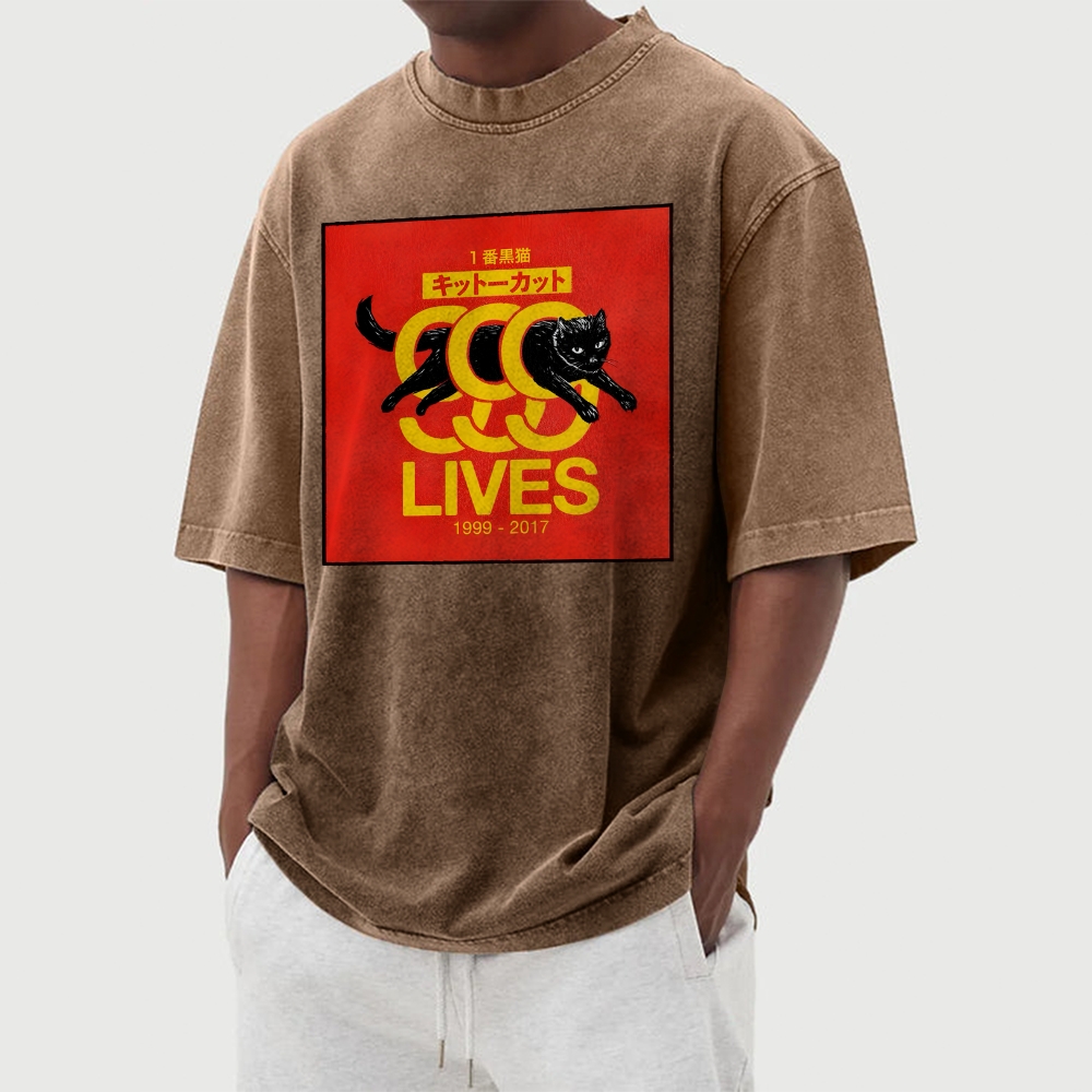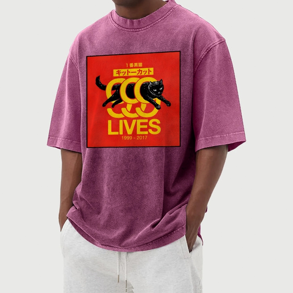 999 Lives Prints Washed Vintage Short Sleeves T-Shirt