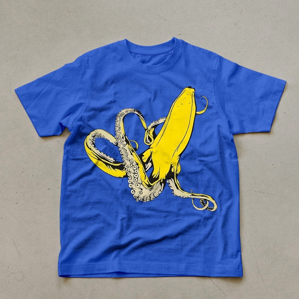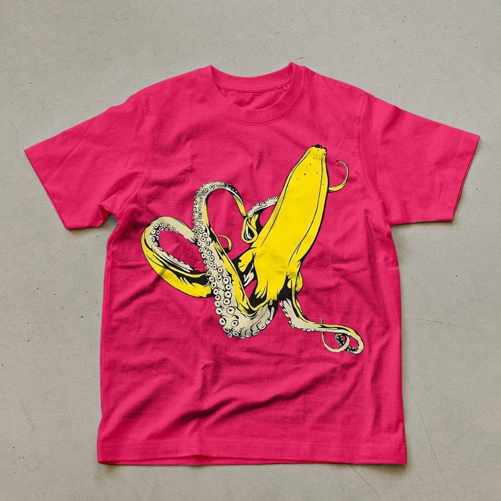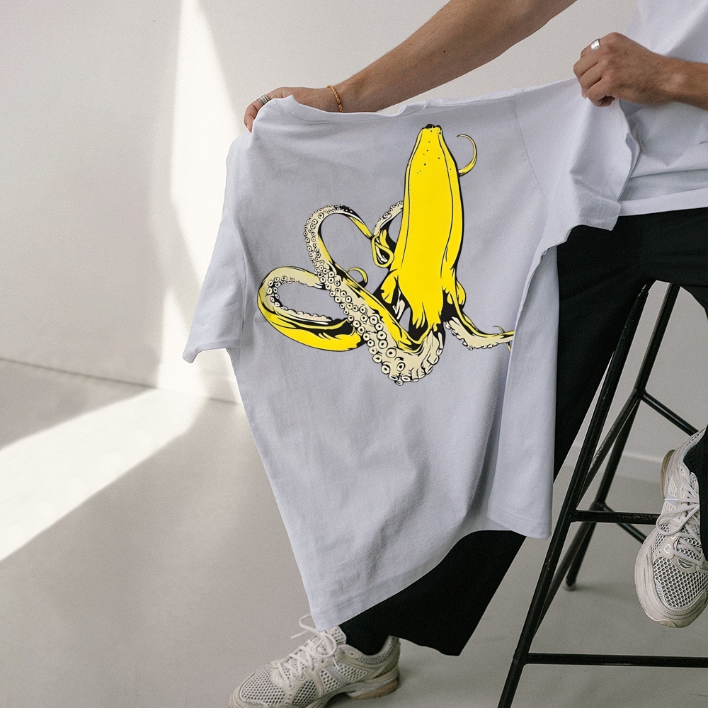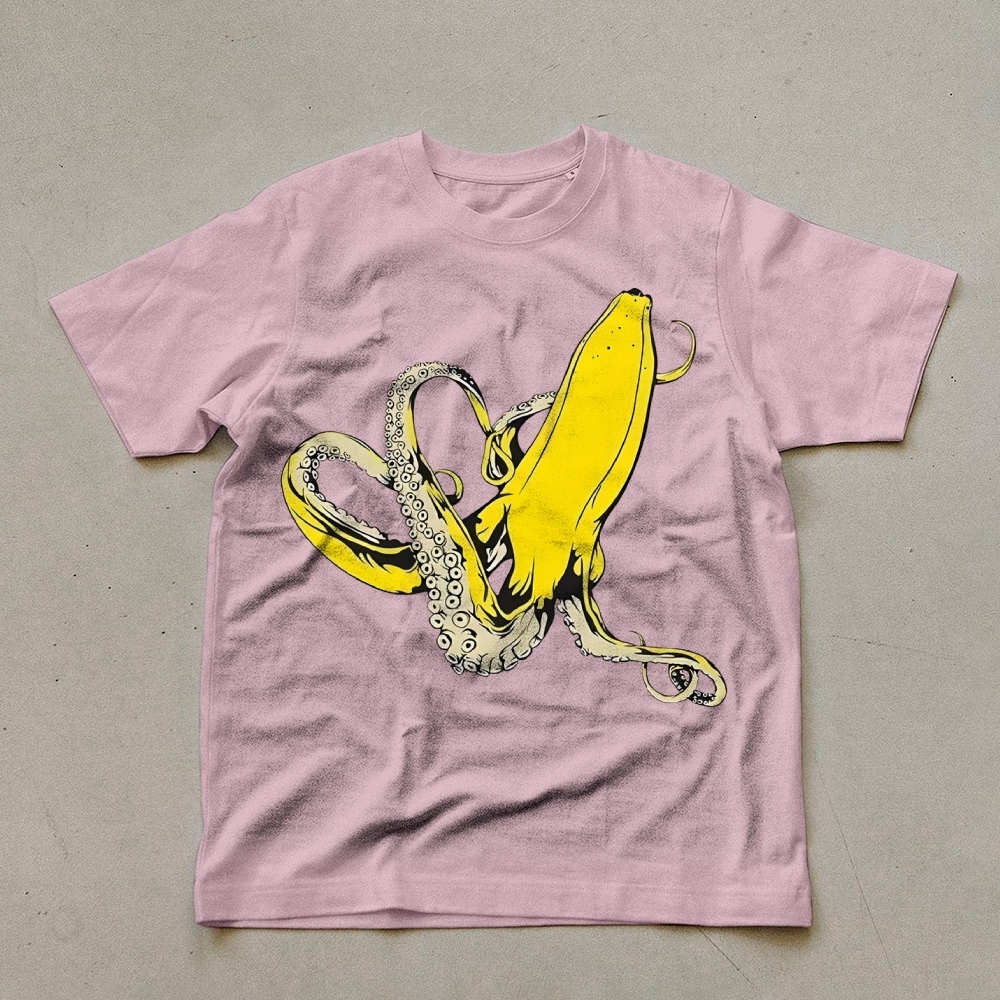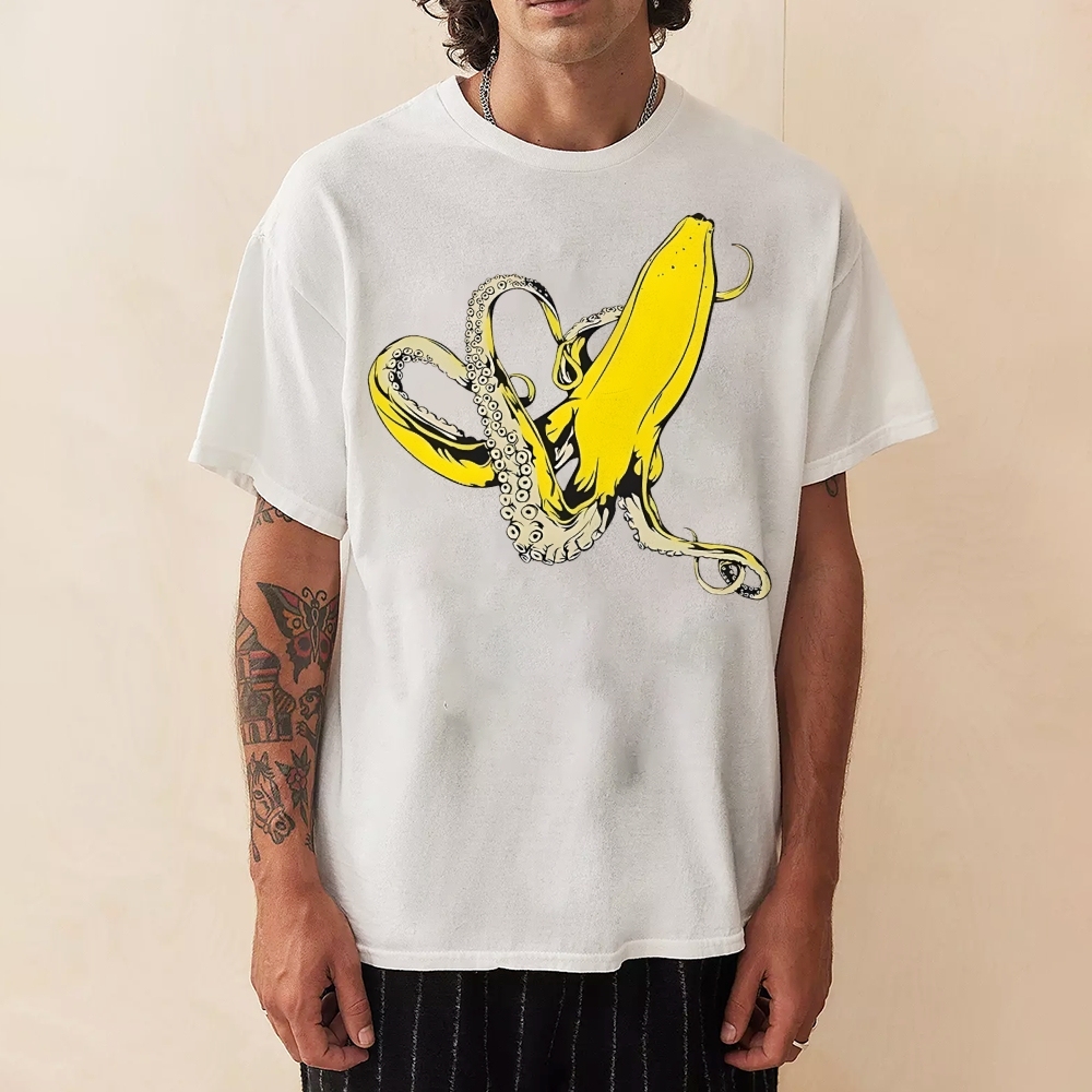 Abstract Banana Octopus Pattern Unisex Prints T-Shirt