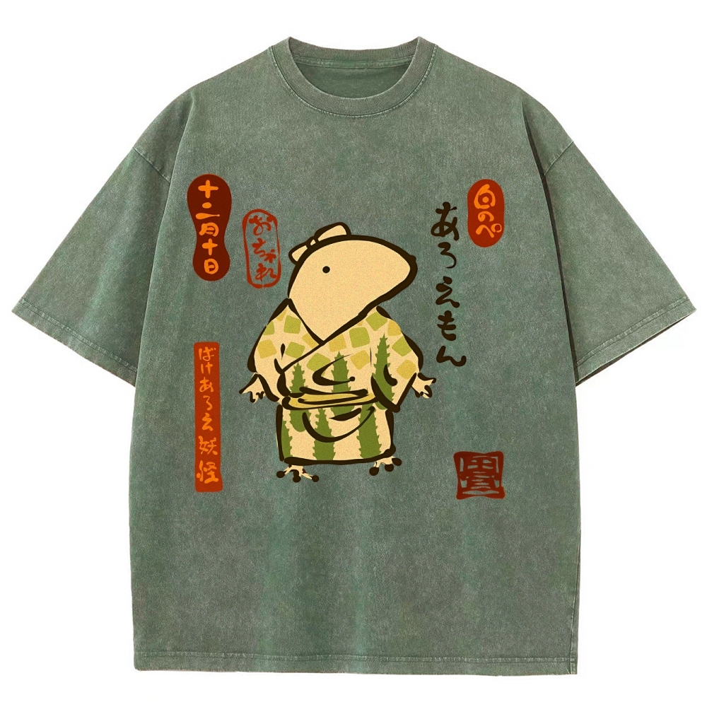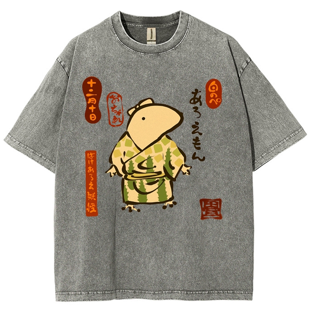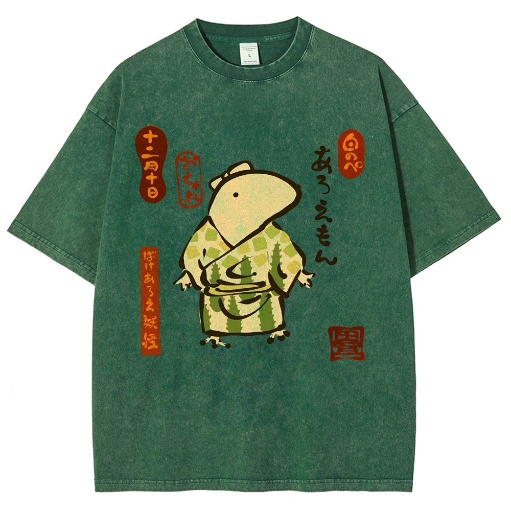 Abstract Monster Printed Washed Vintage Short Sleeves T-Shirt