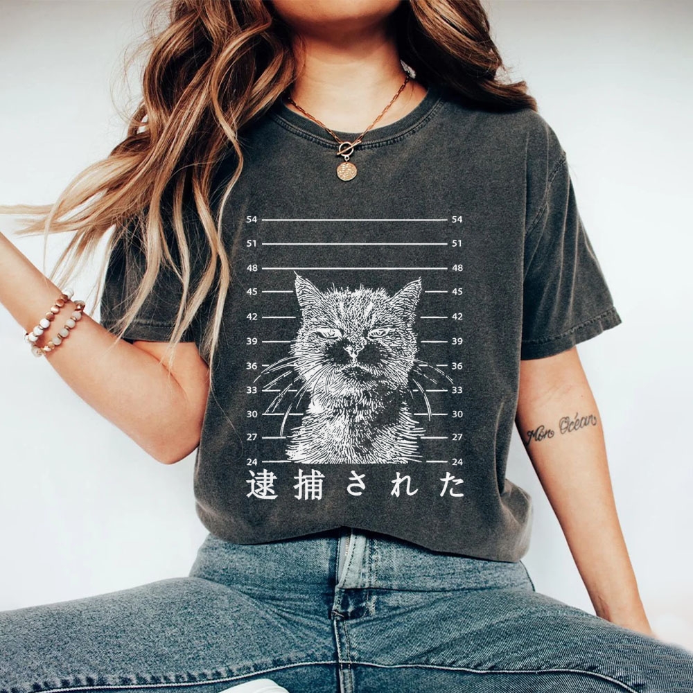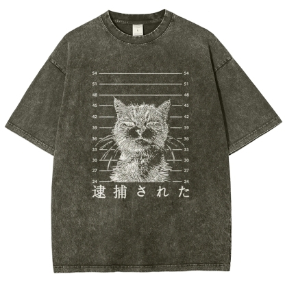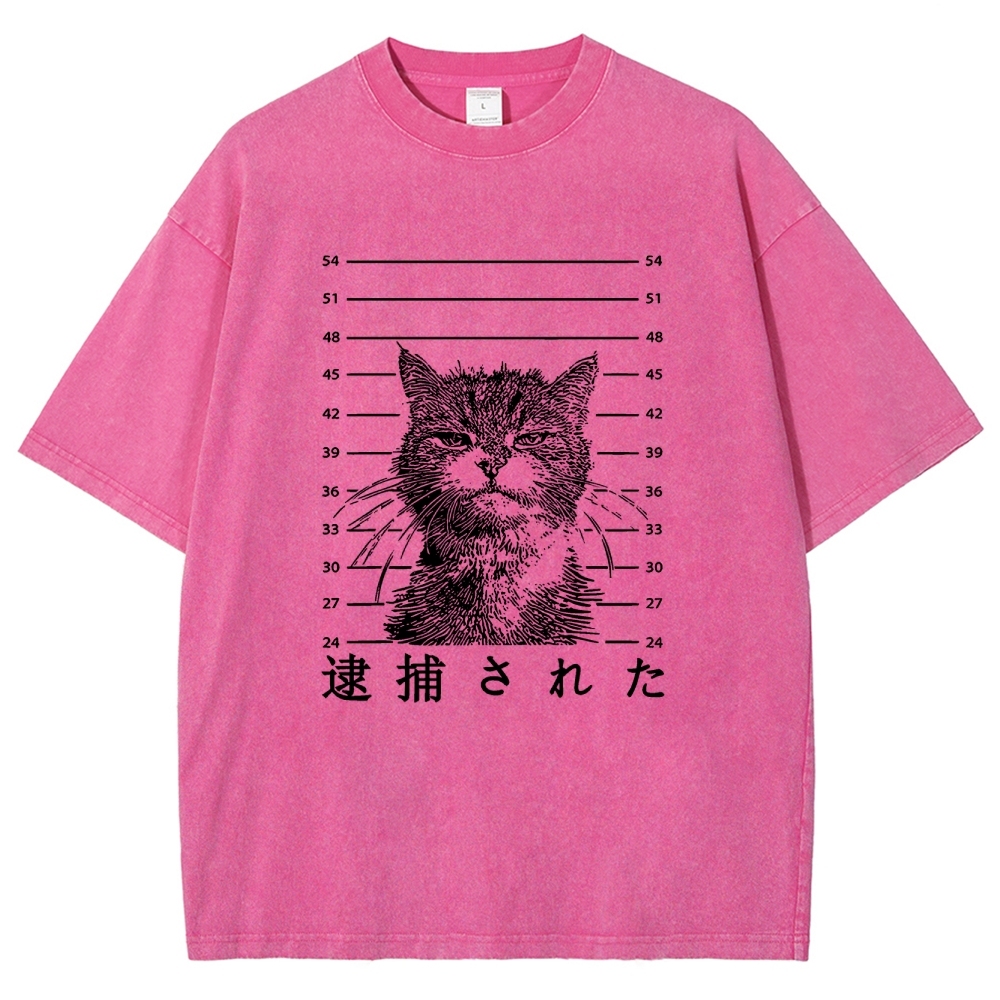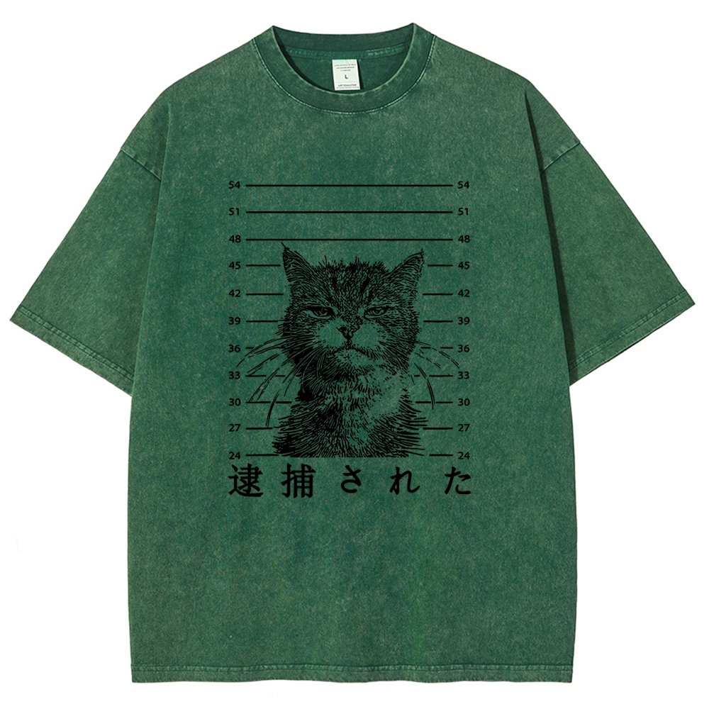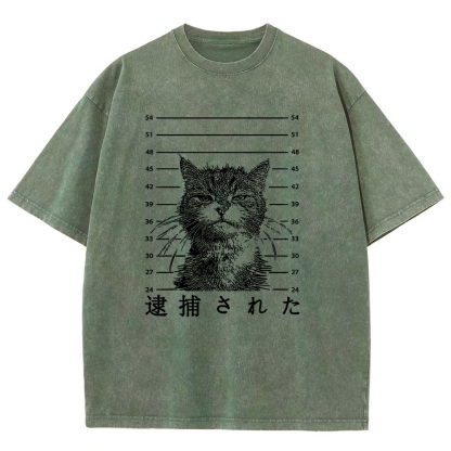 Arrest Cat Unisex Fit Washed T-Shirt