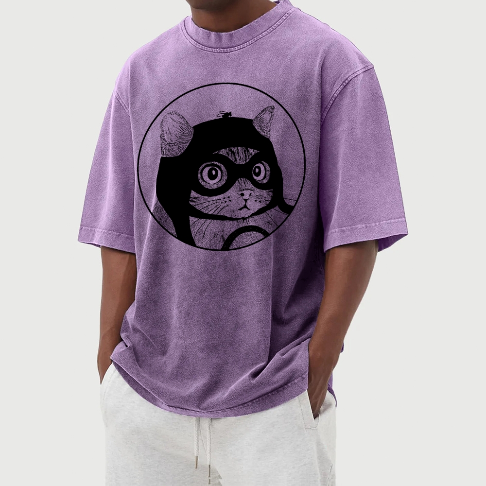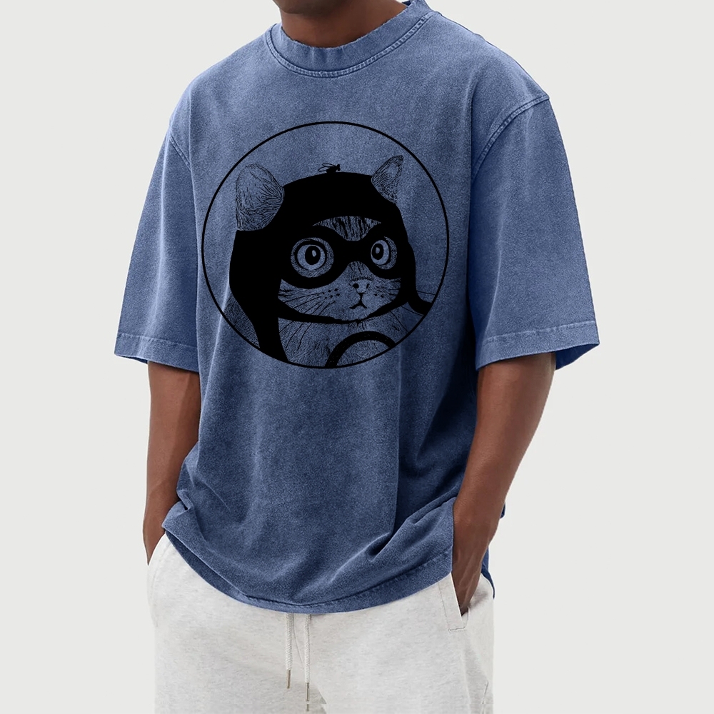 Aviator Cat Washed Vintage Short Sleeves T-Shirt