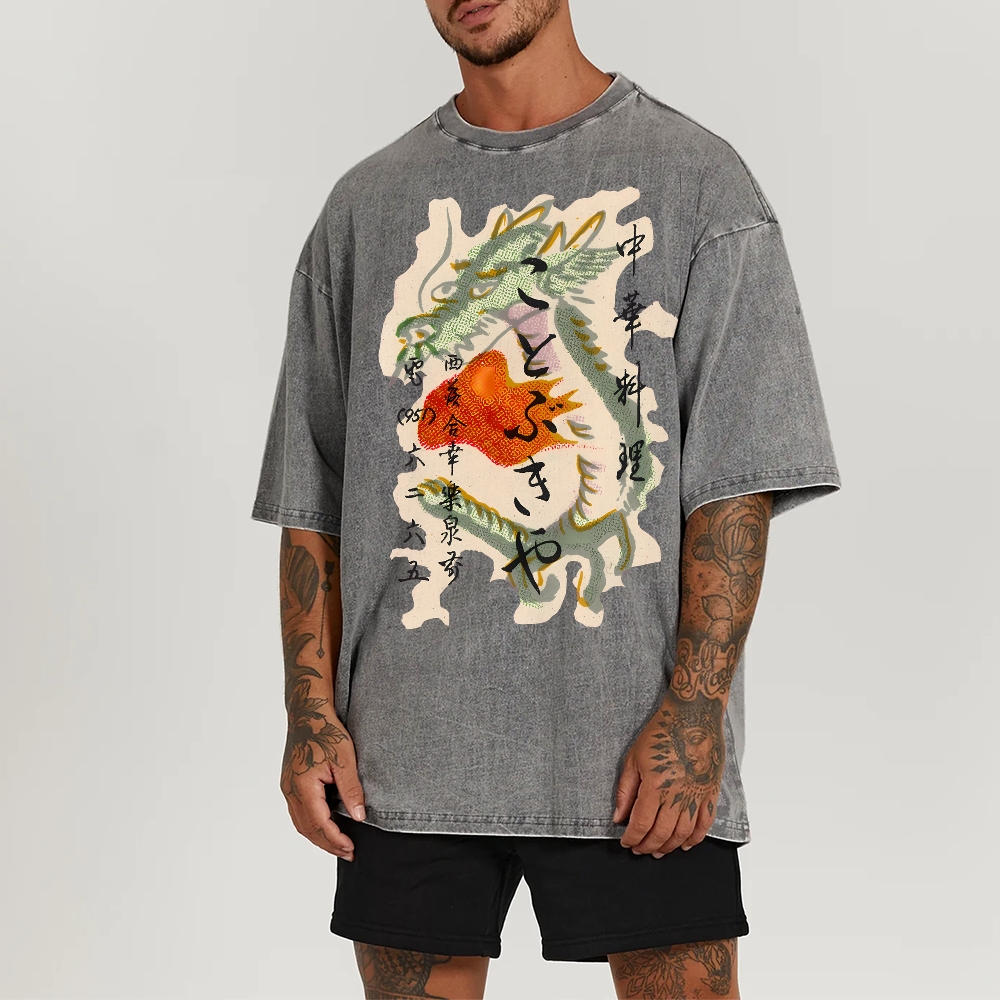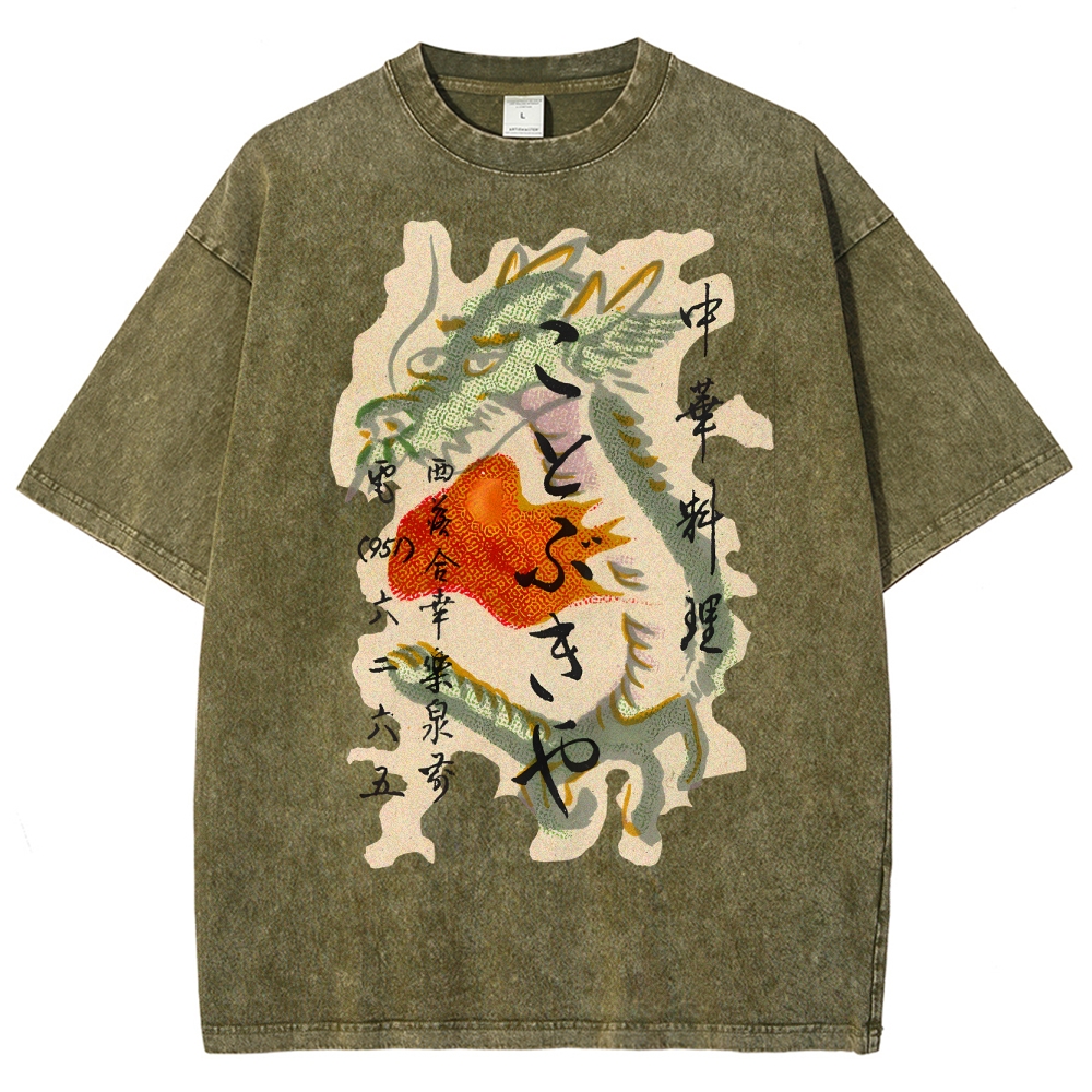 Azure Dragon Washed Vintage Short Sleeves T-Shirt