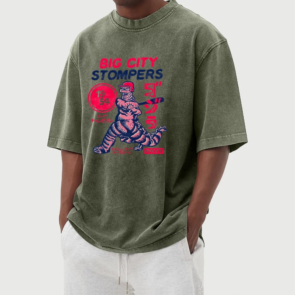 Baseball Godzilla Washed Vintage Short Sleeves T-Shirt