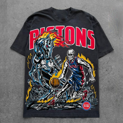 Basketball Skull Flame Print Short-Sleeved T-Shirt
