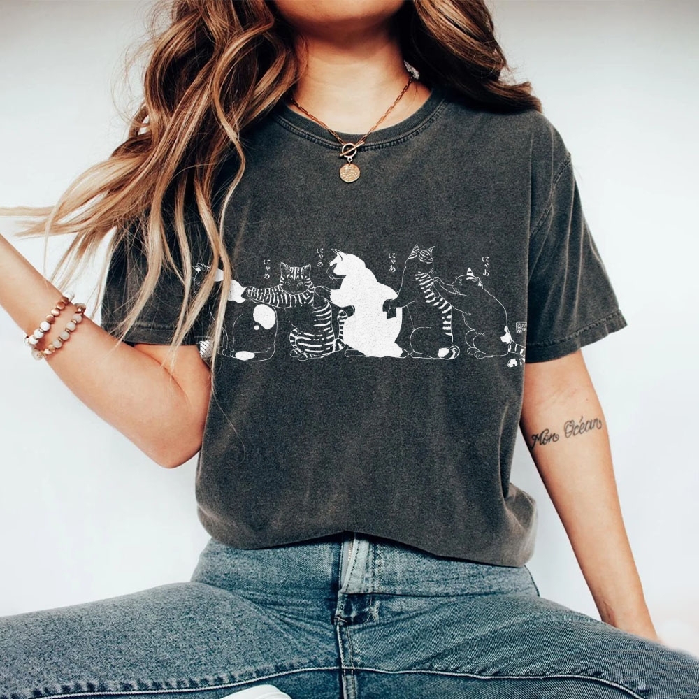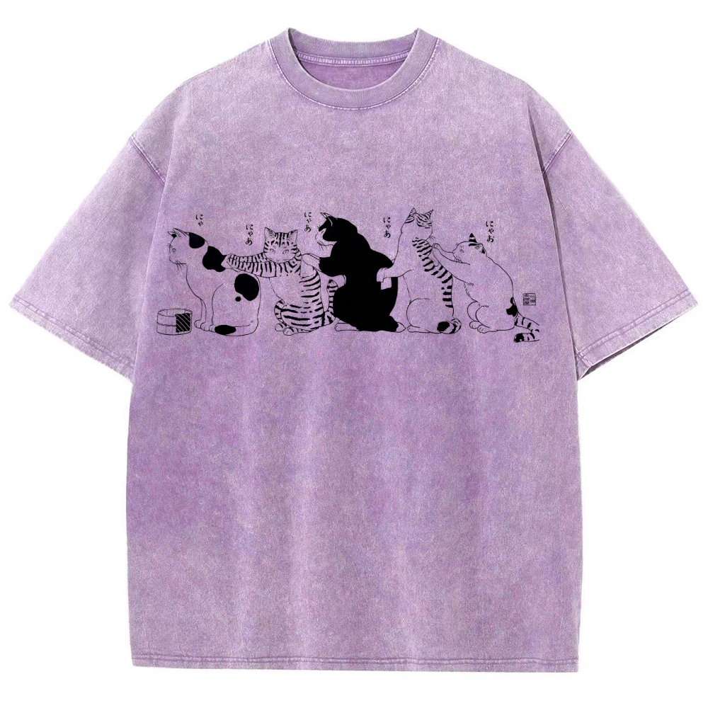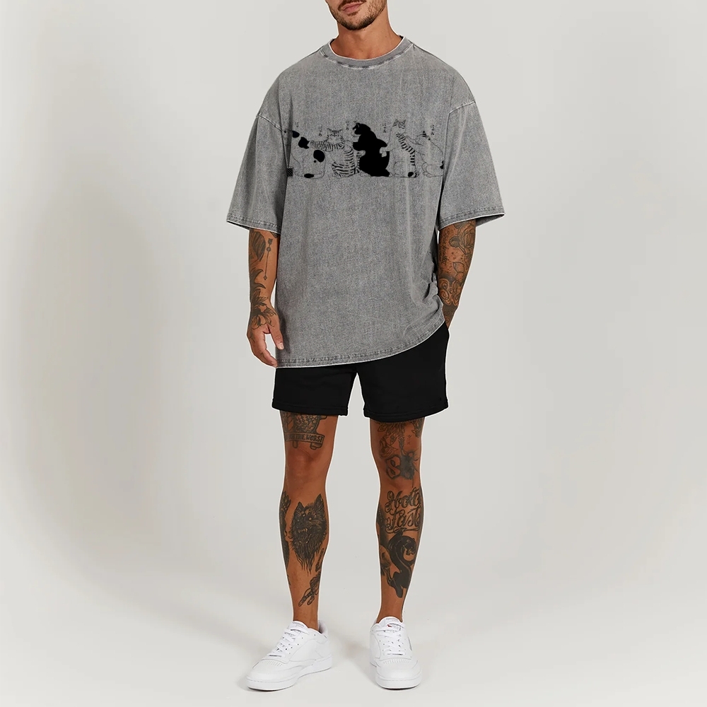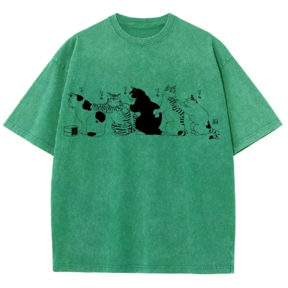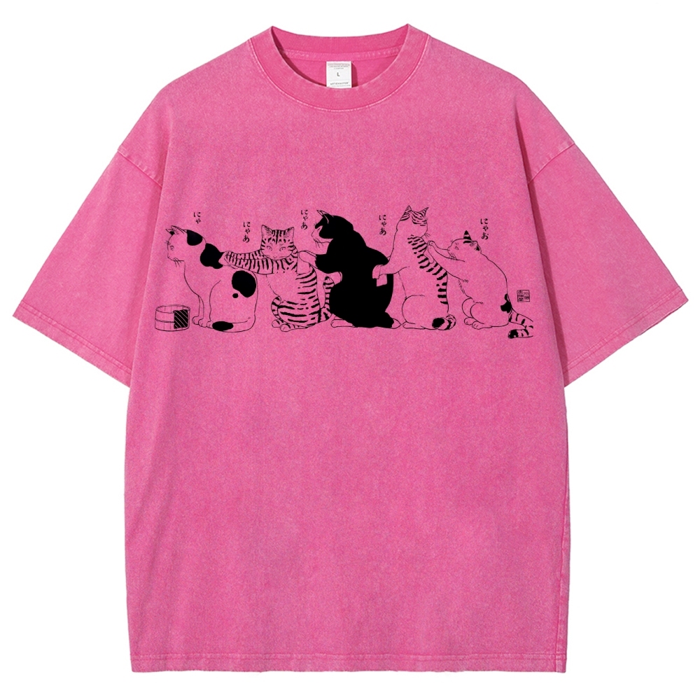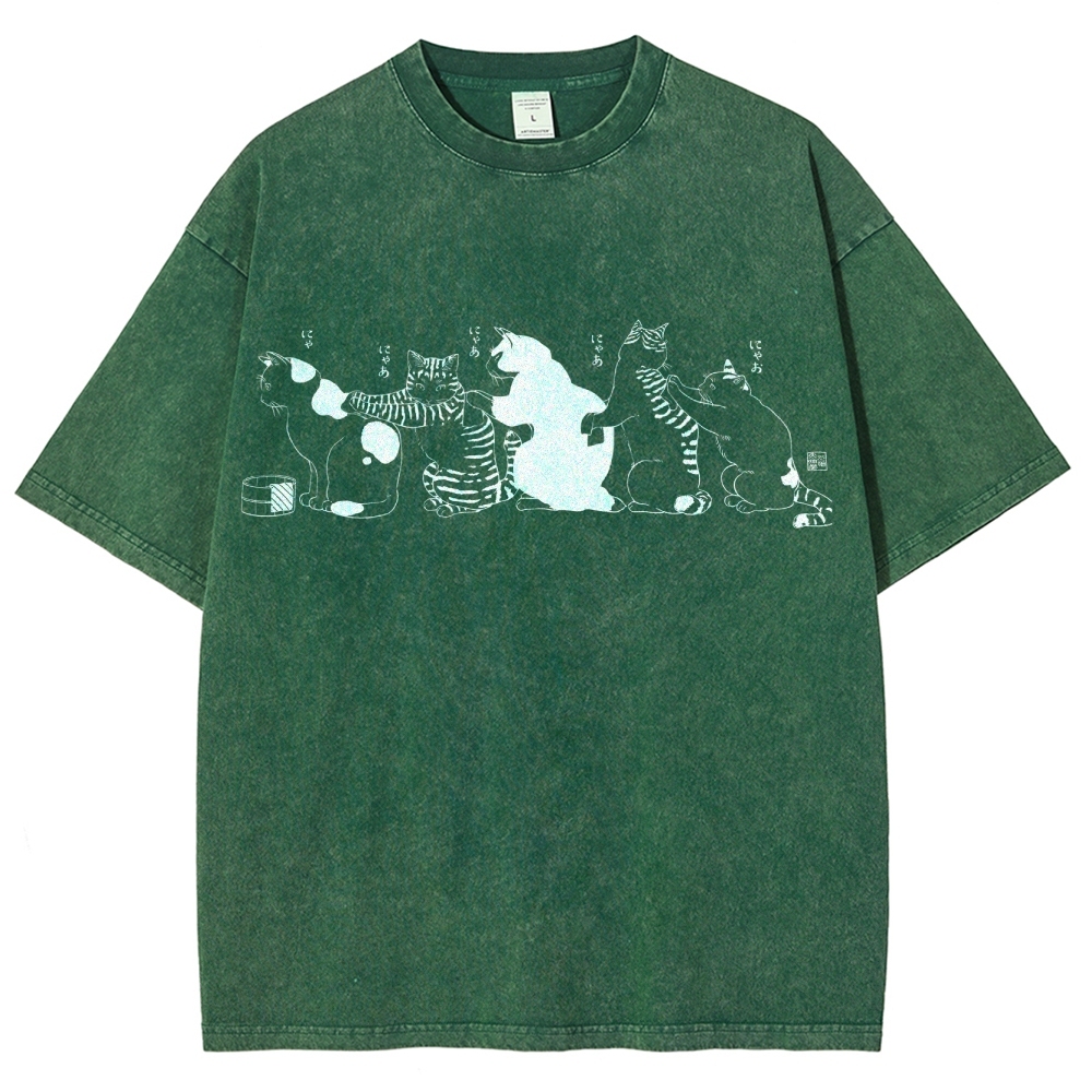 Bath Cat Washed Vintage Short Sleeves T-Shirt
