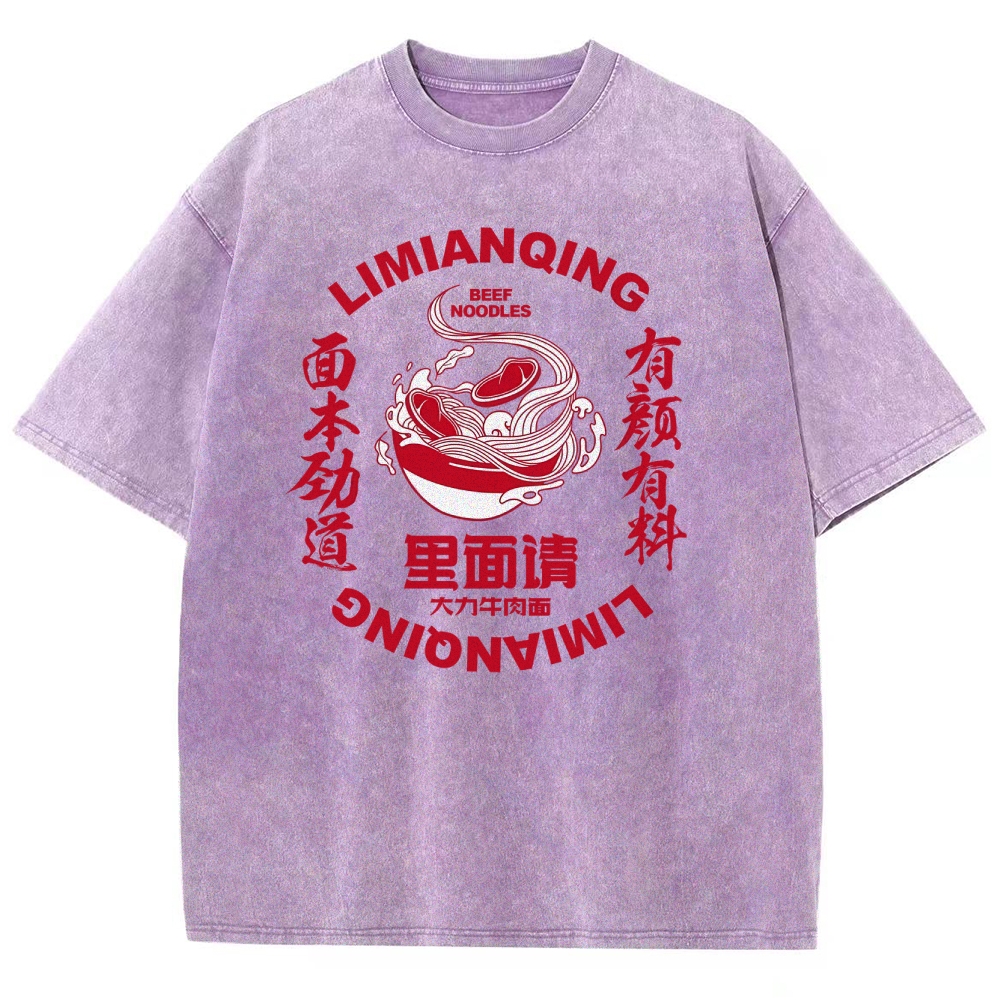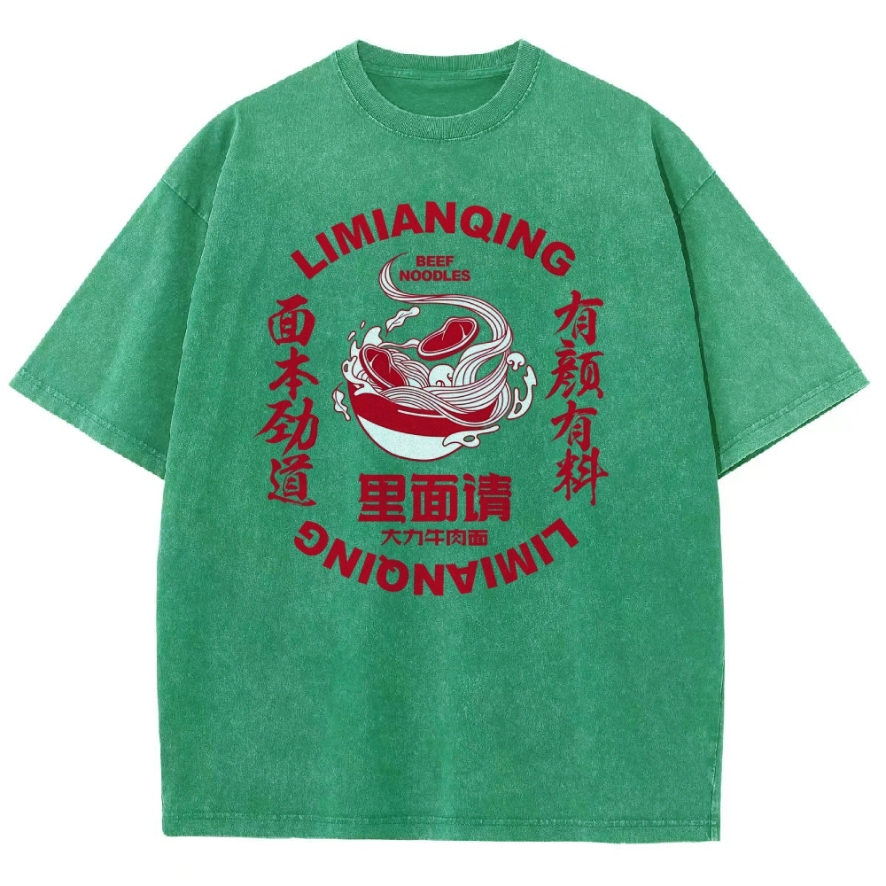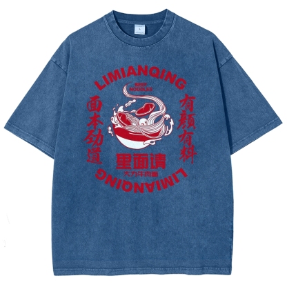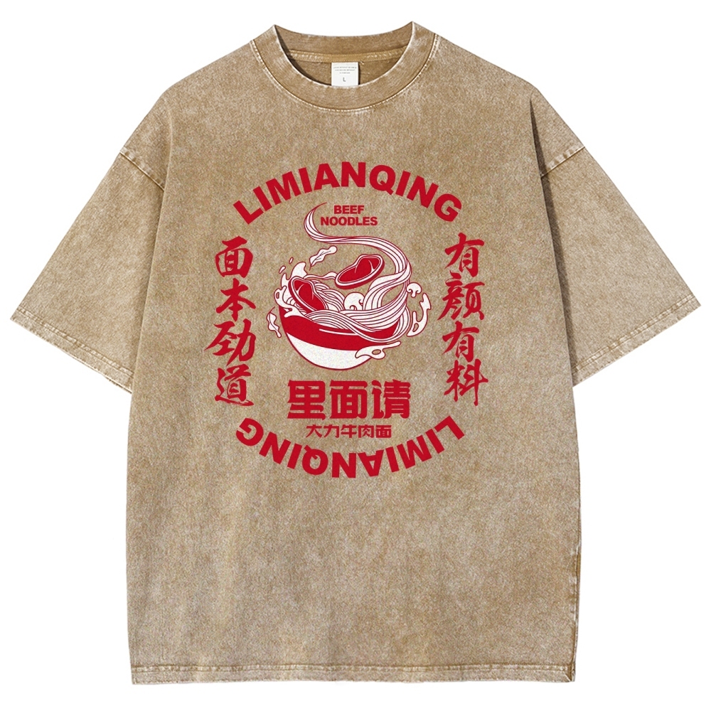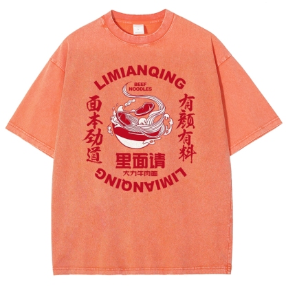 Beef Noodles Washed Vintage Short Sleeves T-Shirt