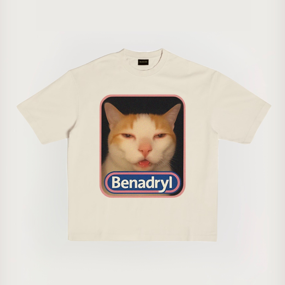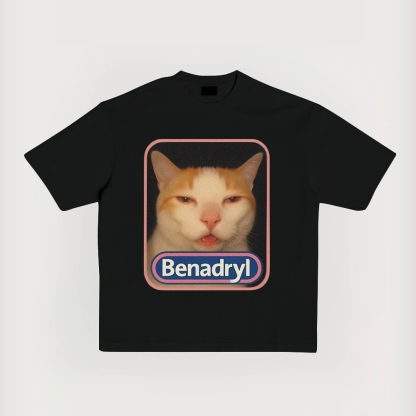 Benadryl Meme Cat Printed Short-Sleeved T-Shirt