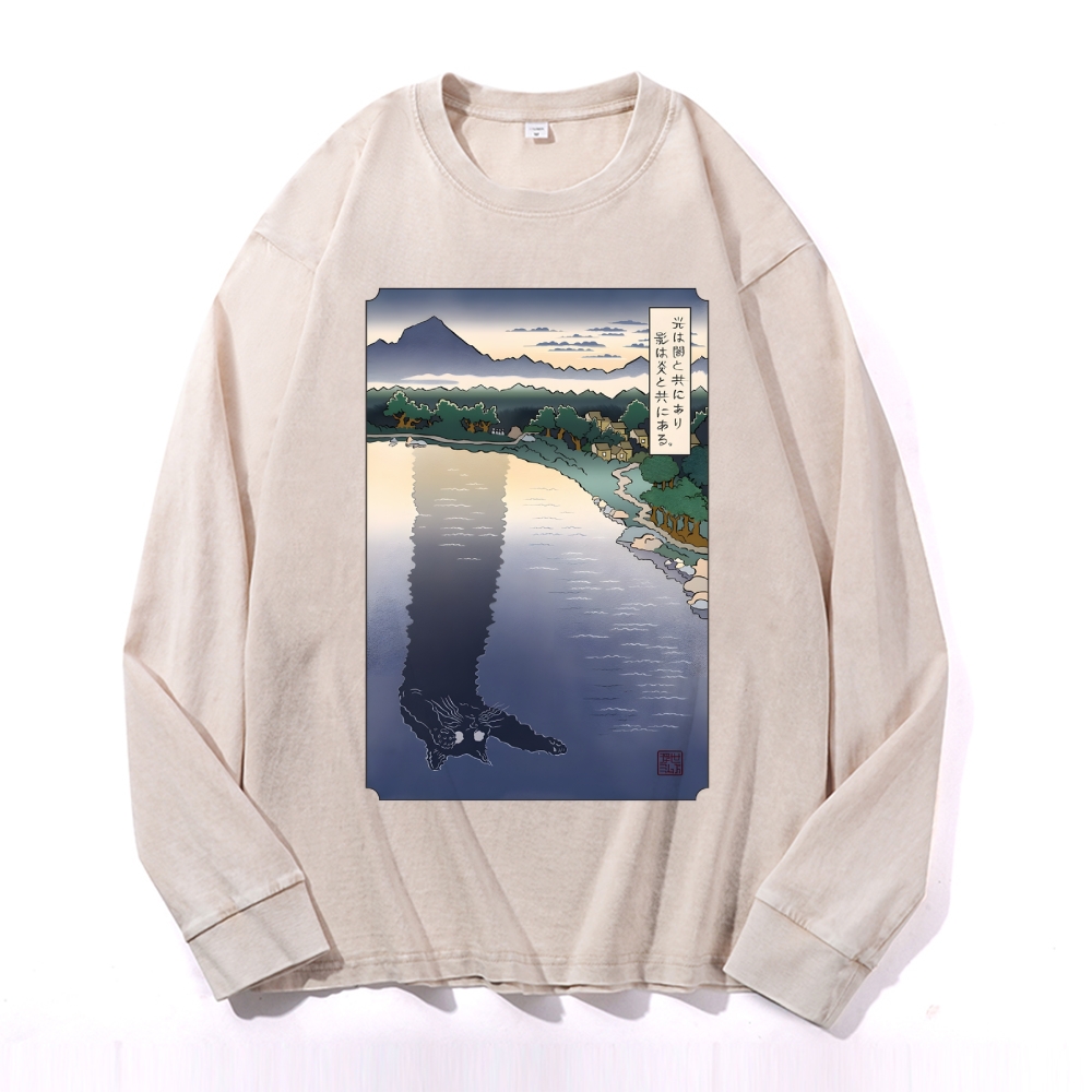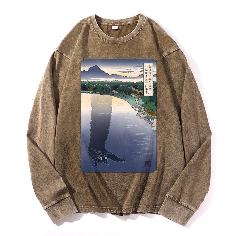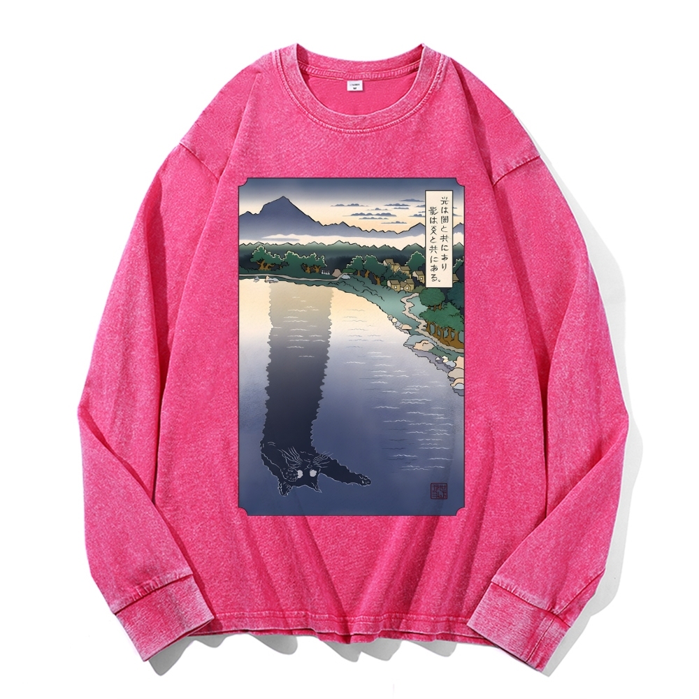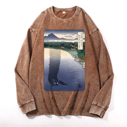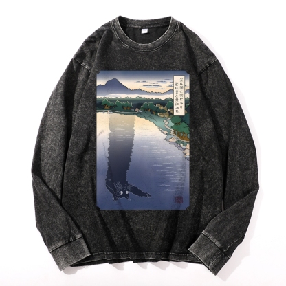 Black Cat Monster Deep Washed Vintage Long Sleeves T-Shirt