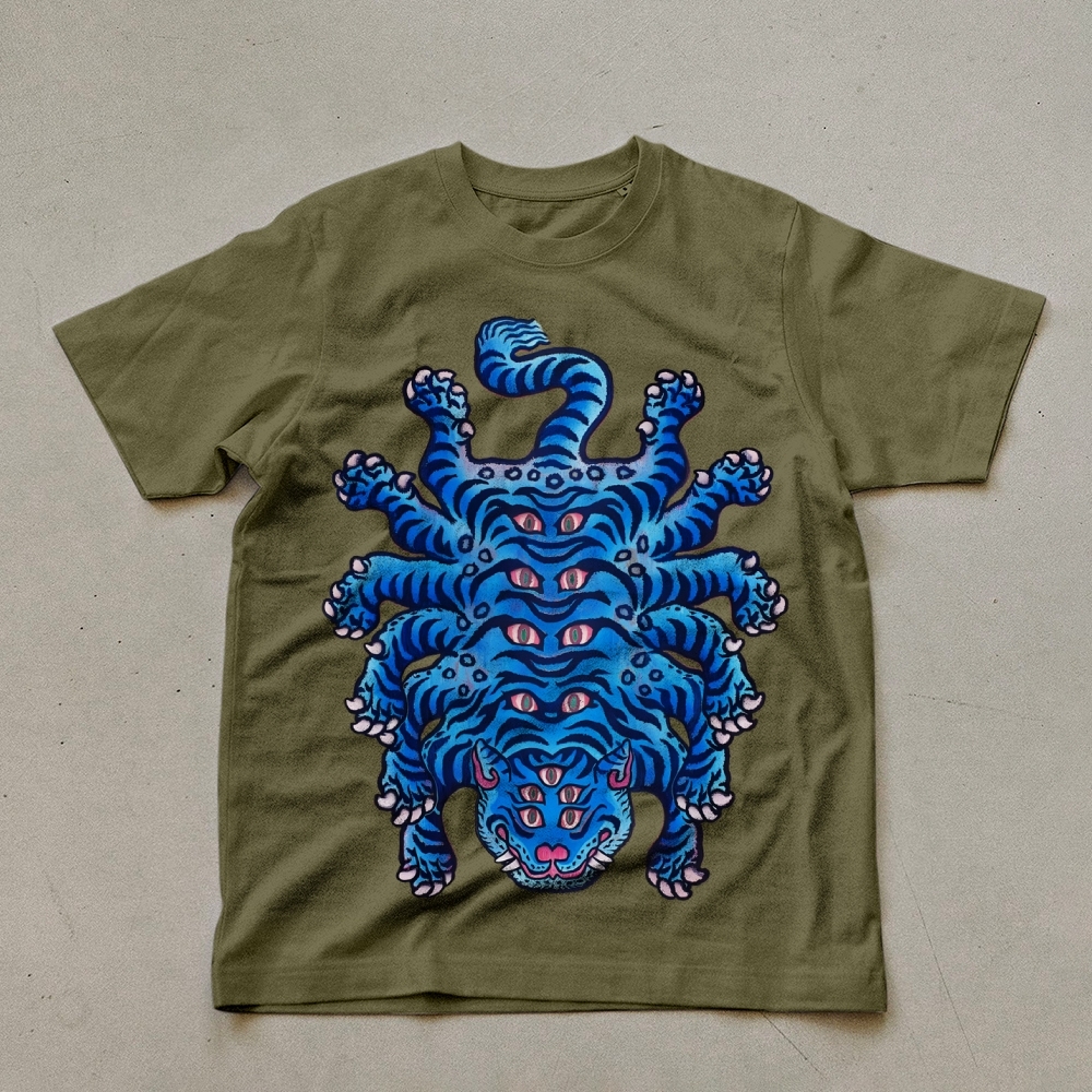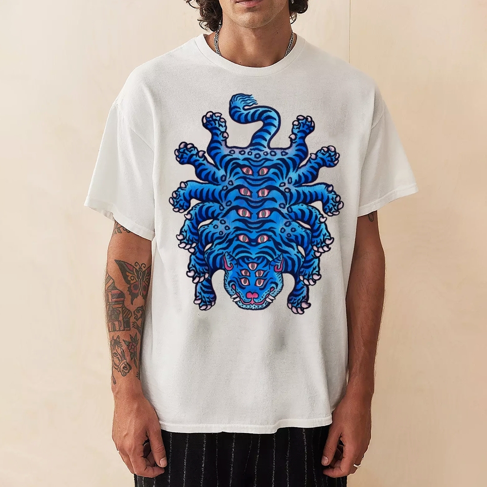 Blue Tiger Monster Pattern Unisex Prints T-Shirt
