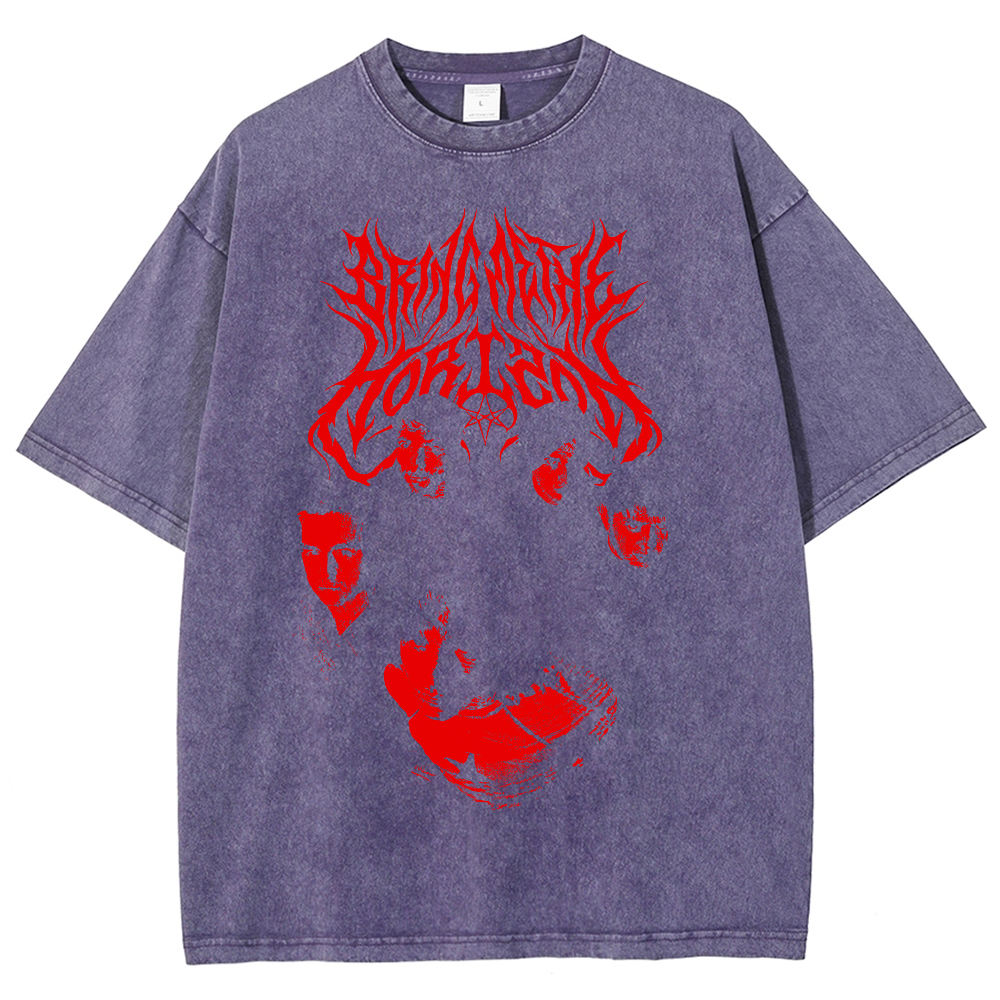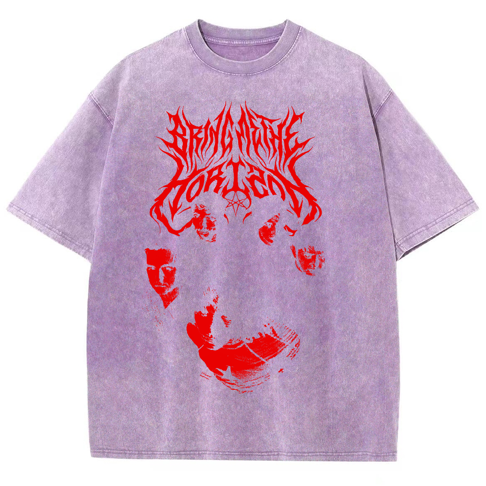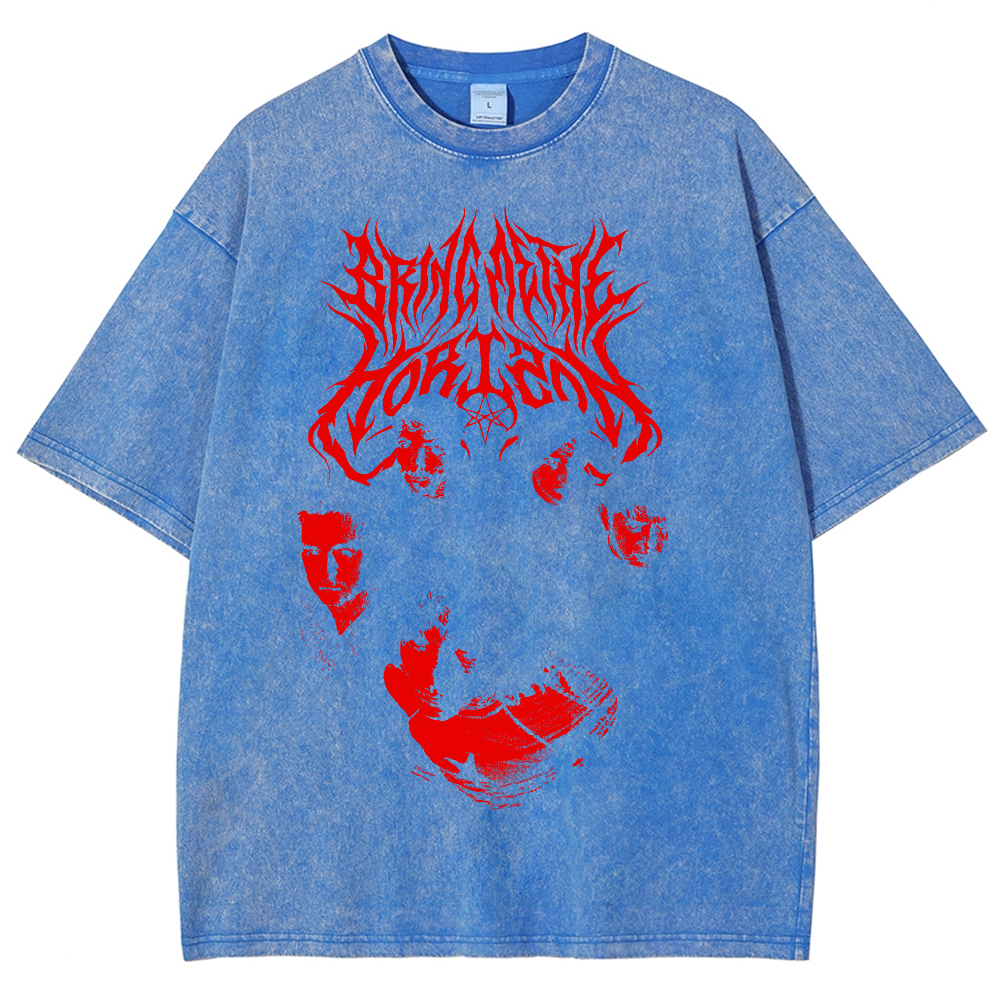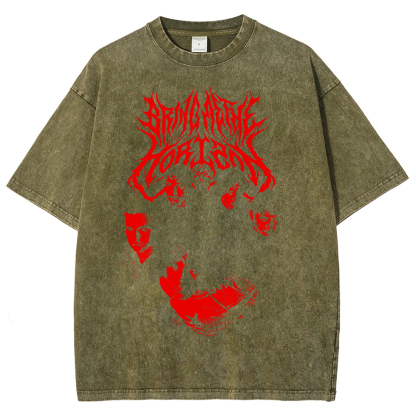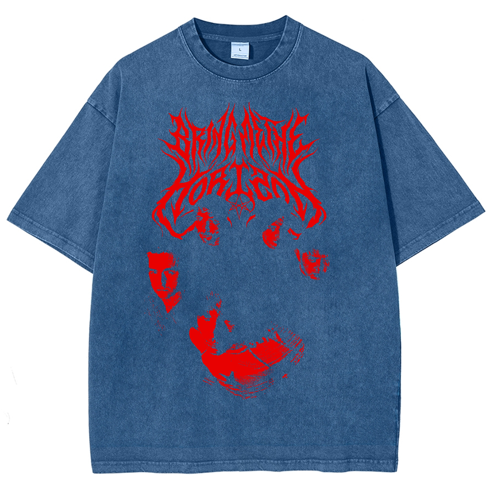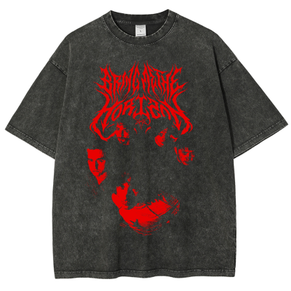 Metal Unique Print Short-Sleeved Washed T-Shirt