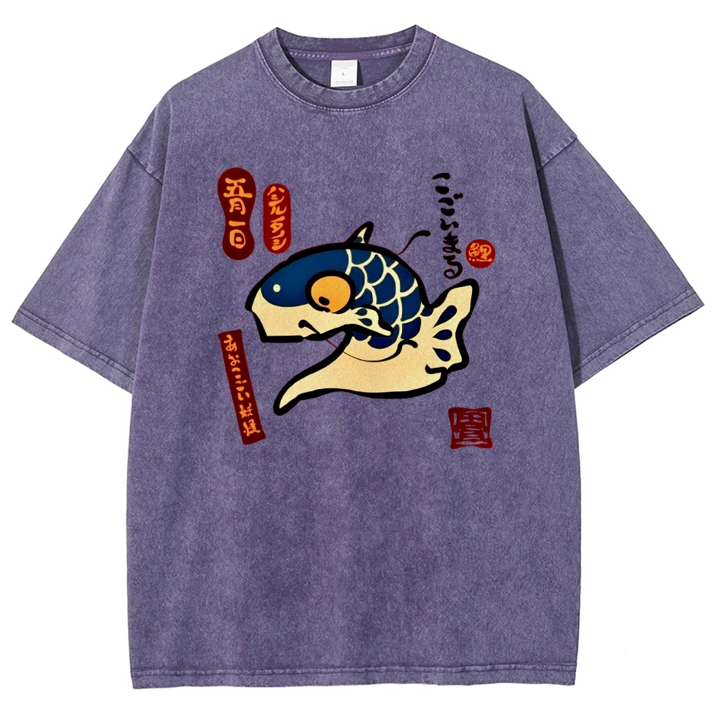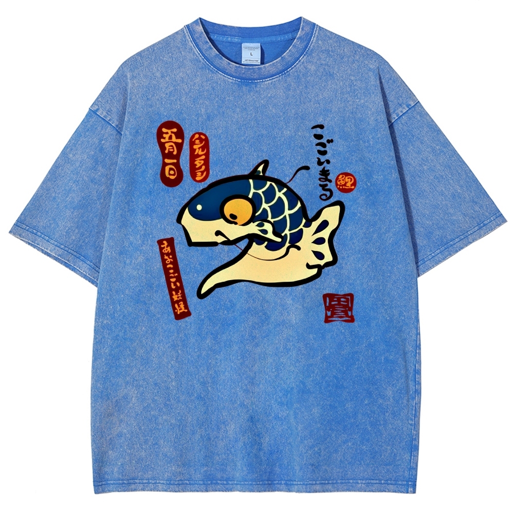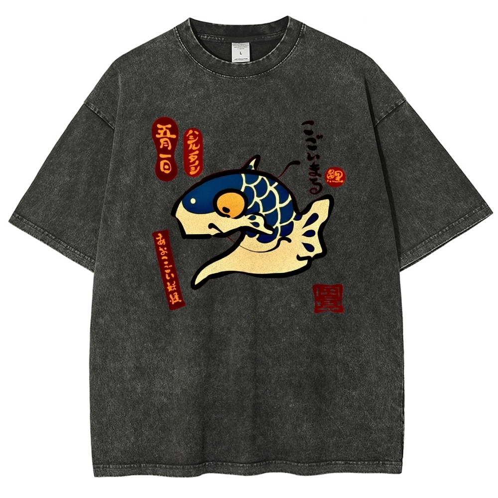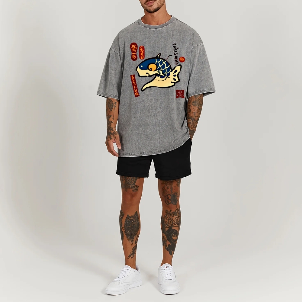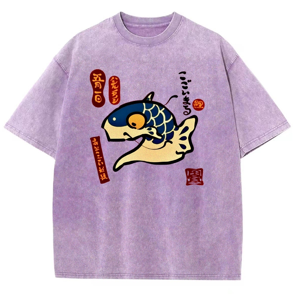 Carp Printed Washed Vintage Short Sleeves T-Shirt