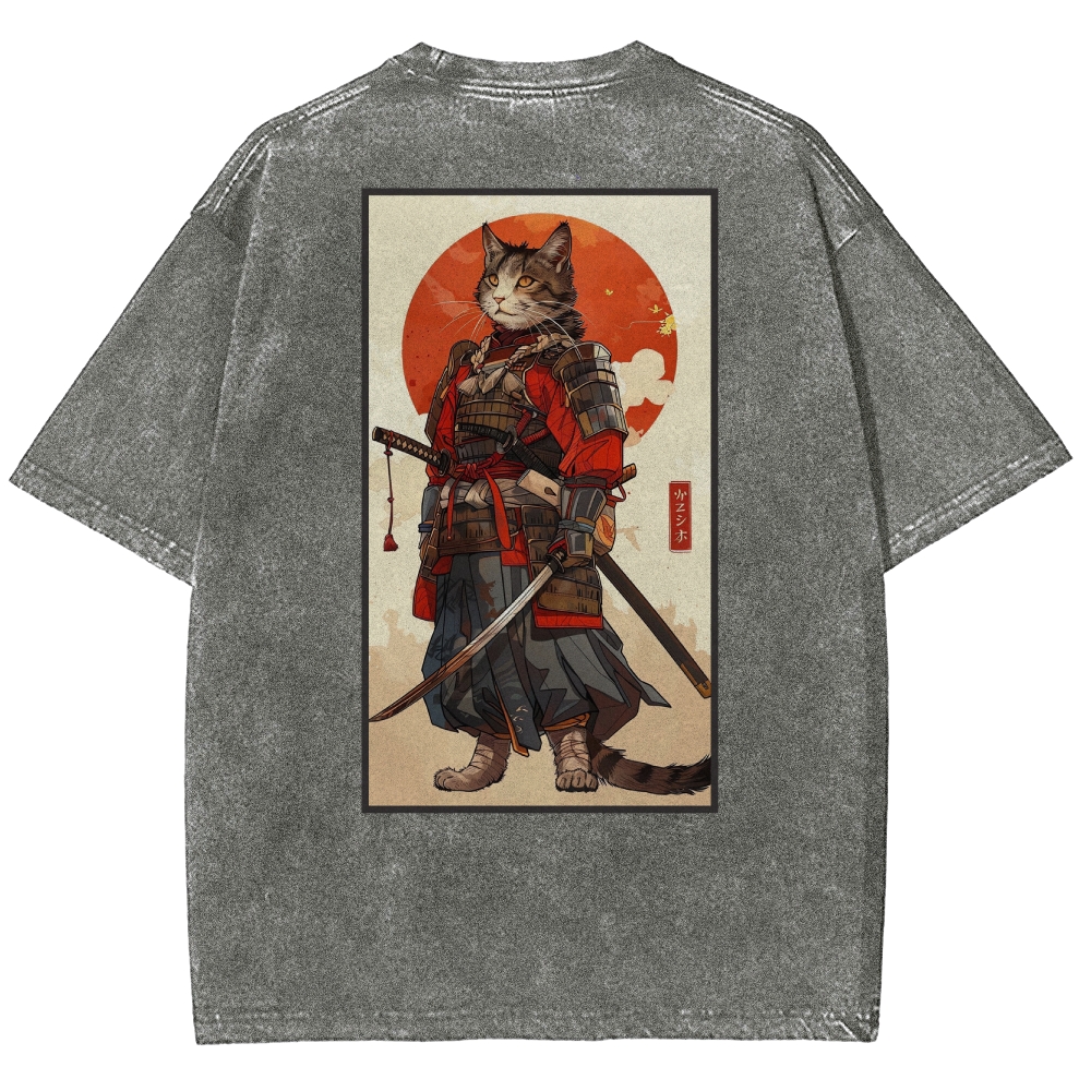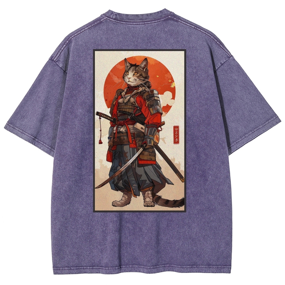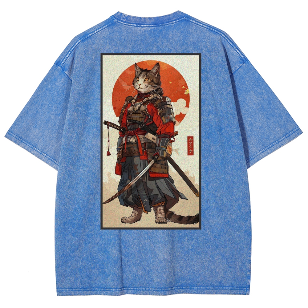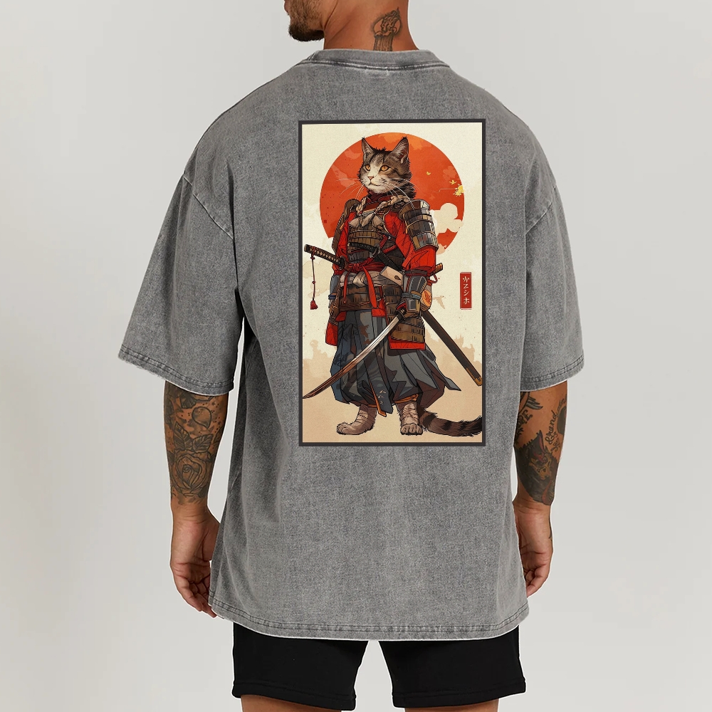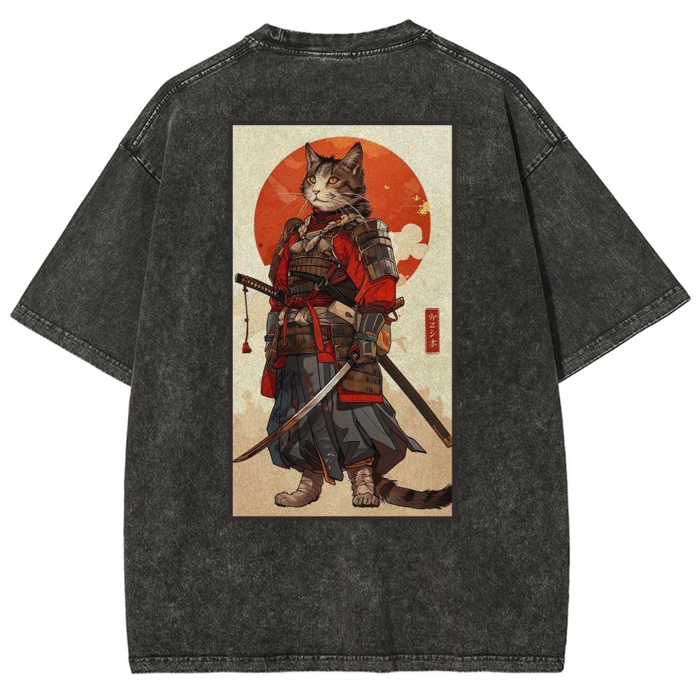 Casual Warrior Cat Washed Vintage Short Sleeves T-Shirt
