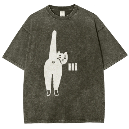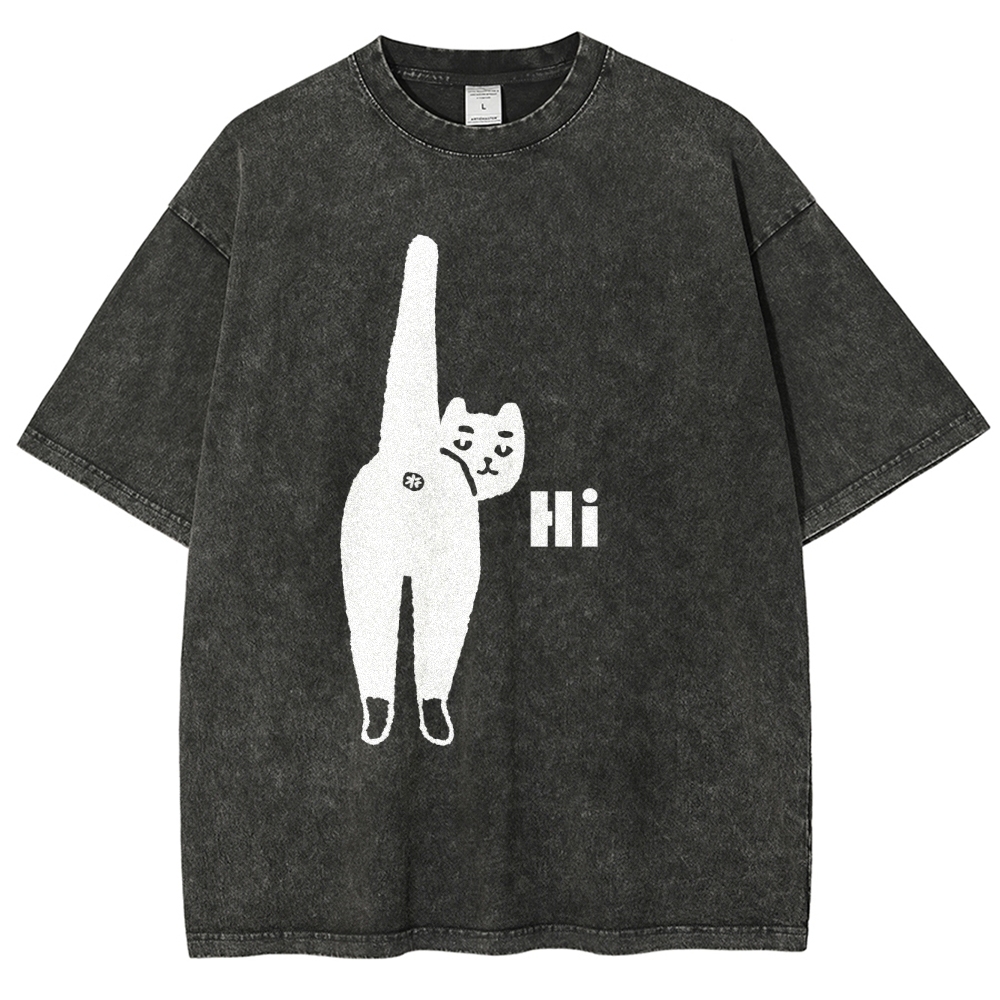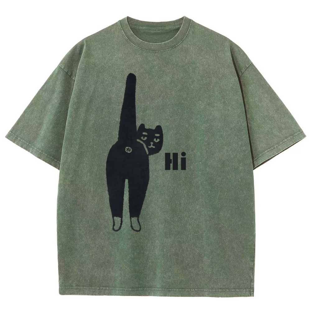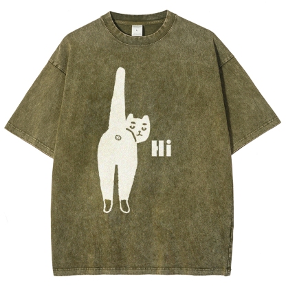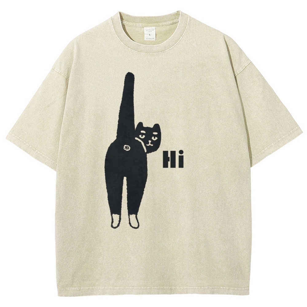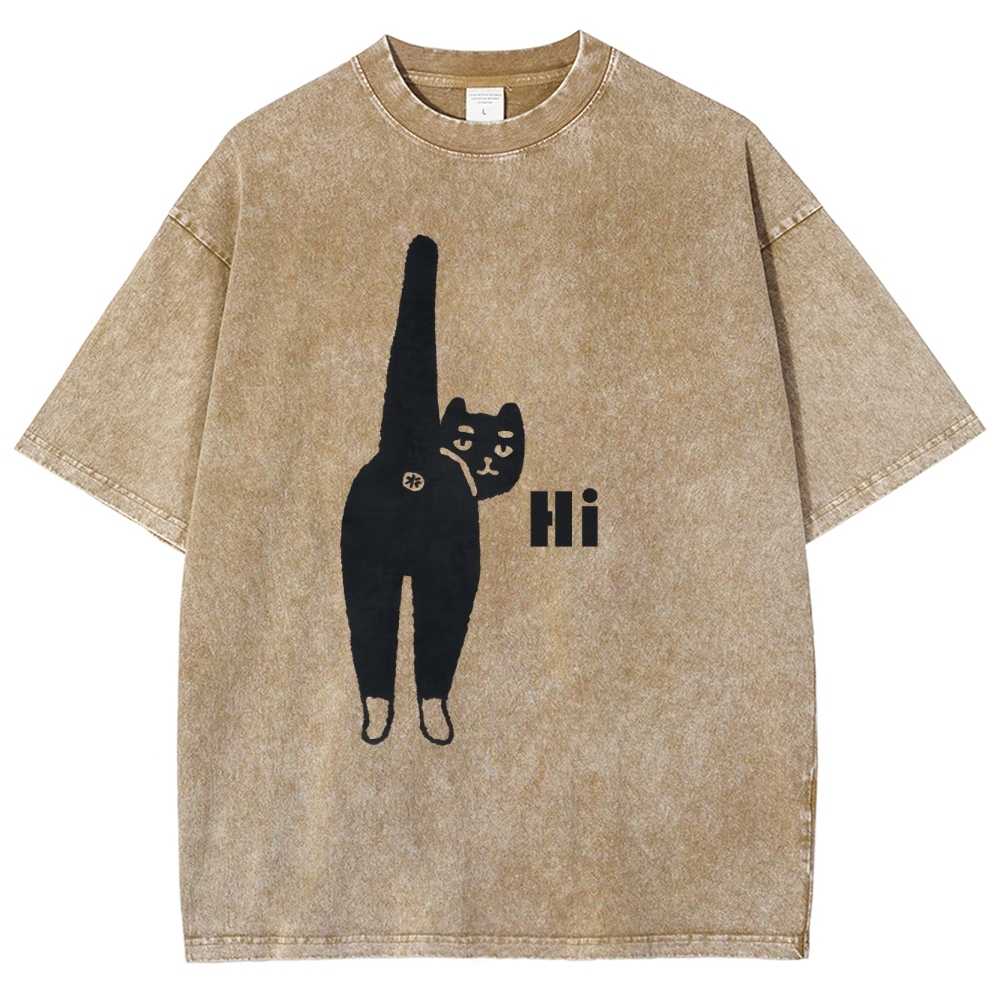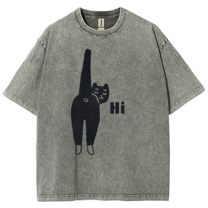 Cat Back Washed Vintage Short Sleeves T-Shirt