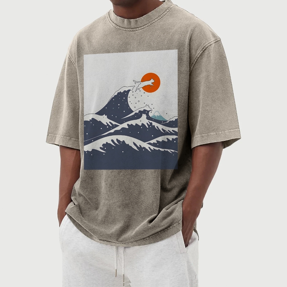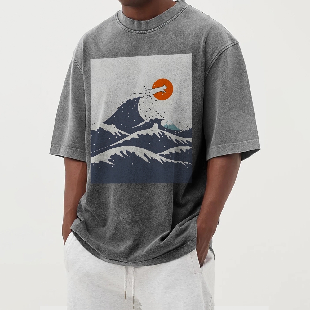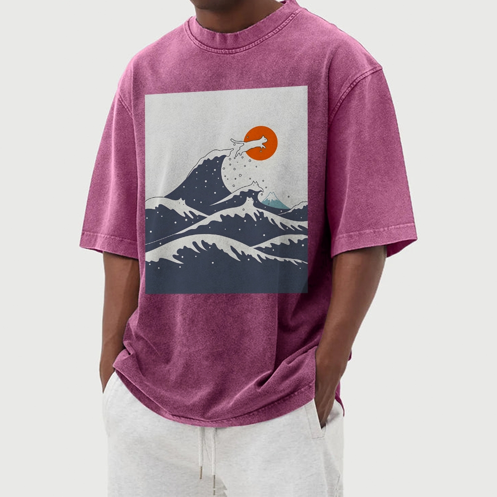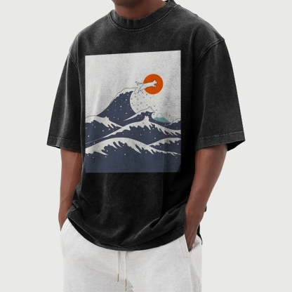 Cat Wave Washed Vintage Short Sleeves T-Shirt