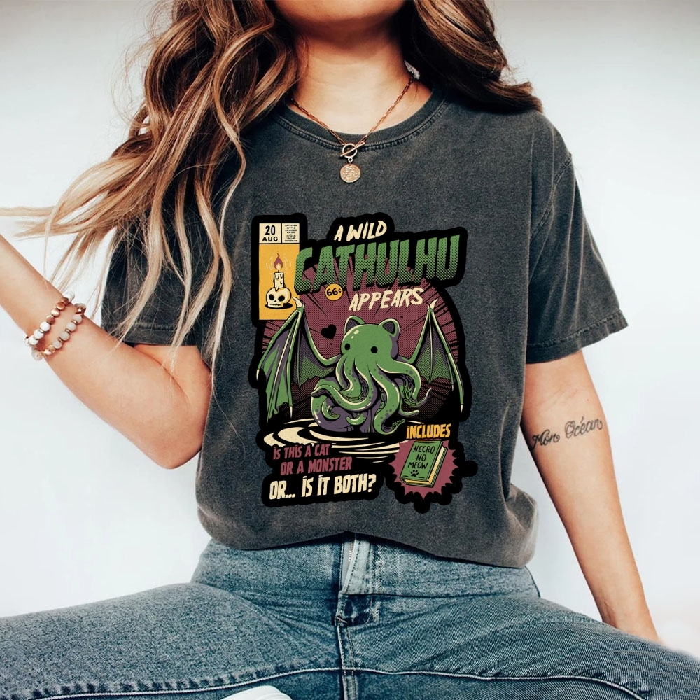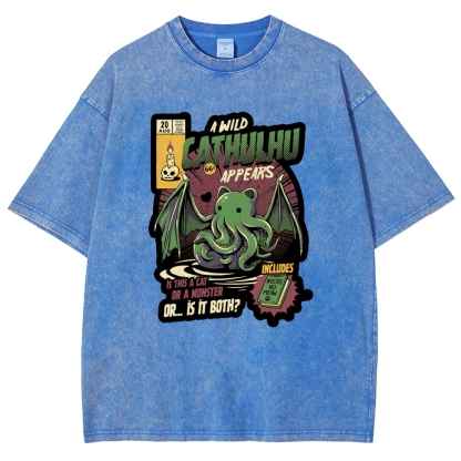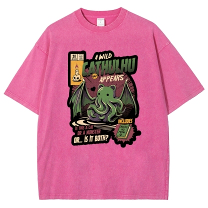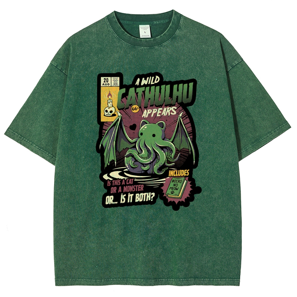 Cathulhu Wild Unisex Fit Washed T-Shirt