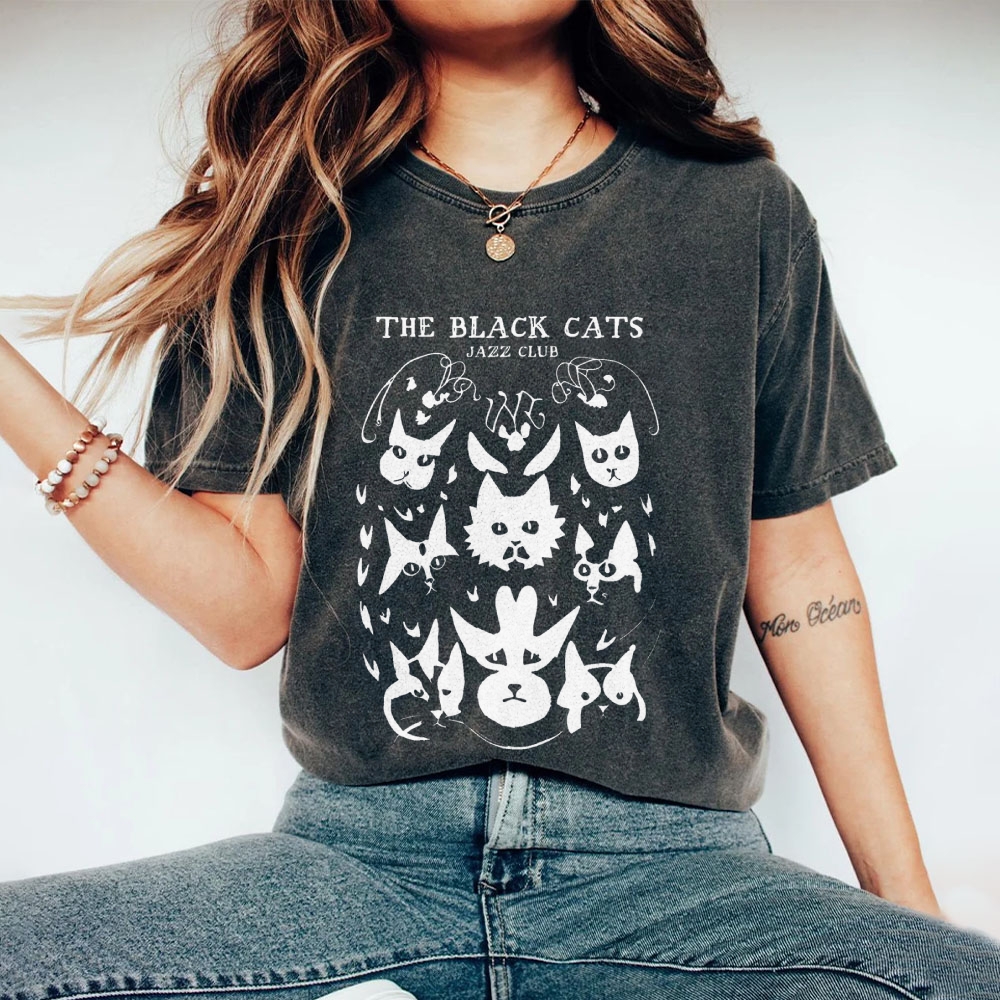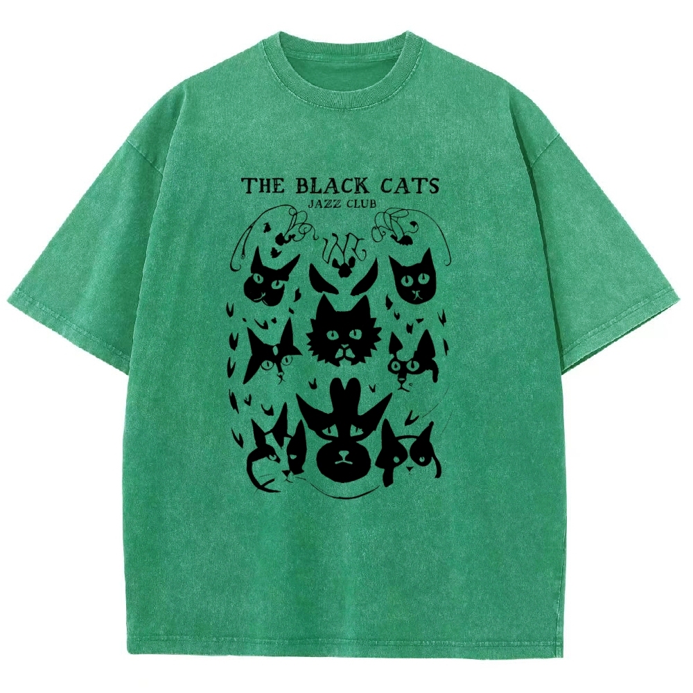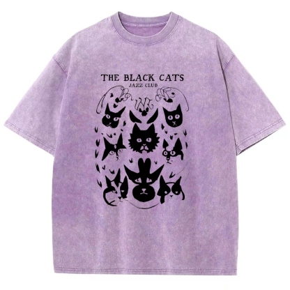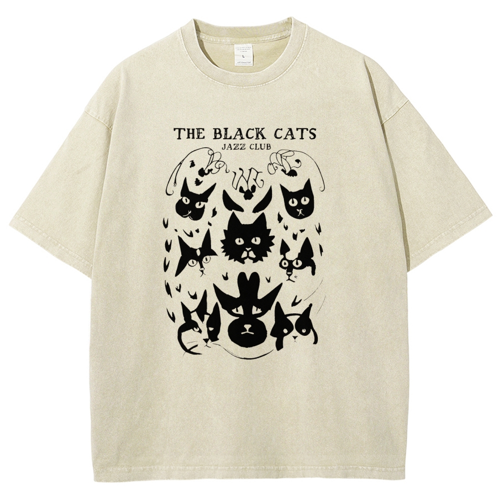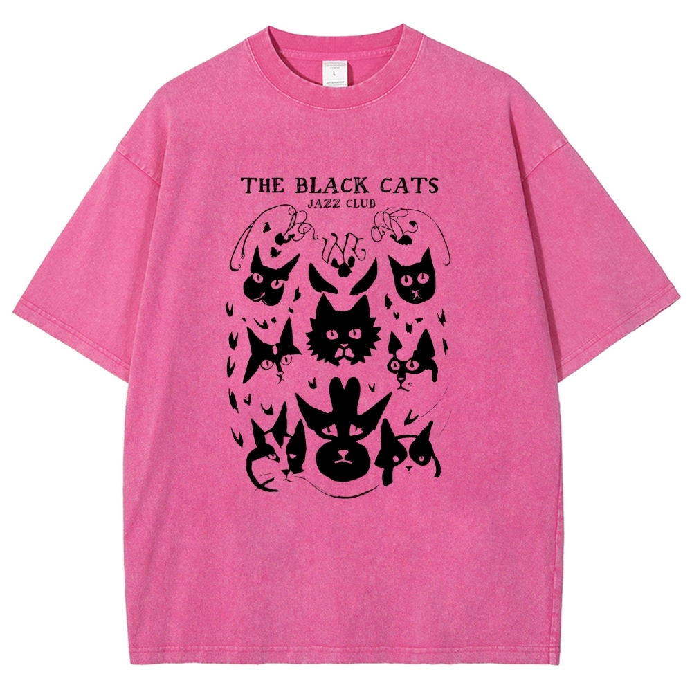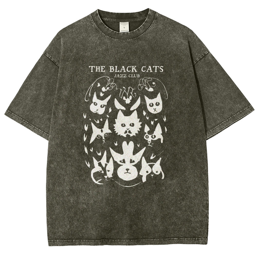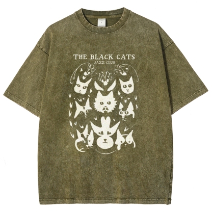 Cats Printed Washed Vintage Short Sleeves T-Shirt