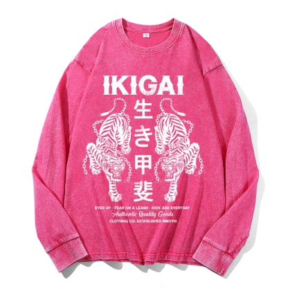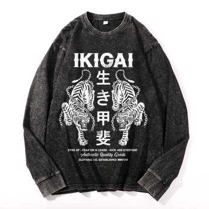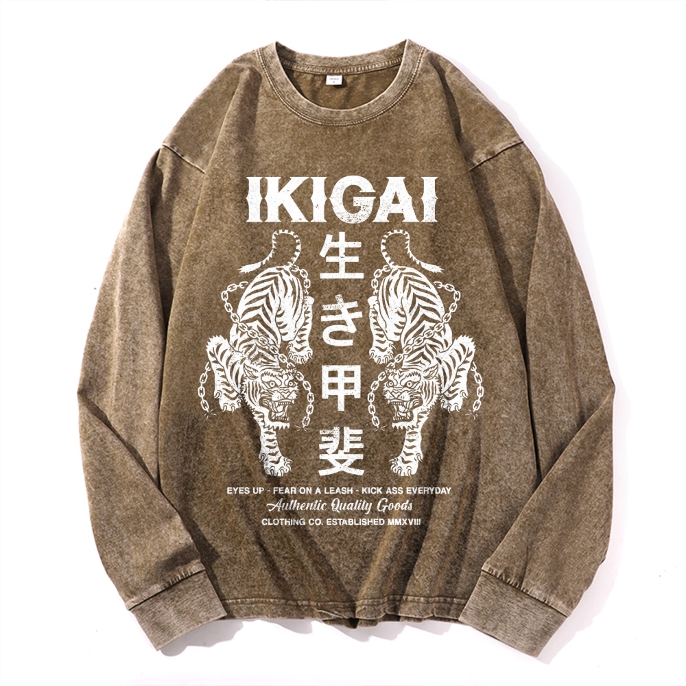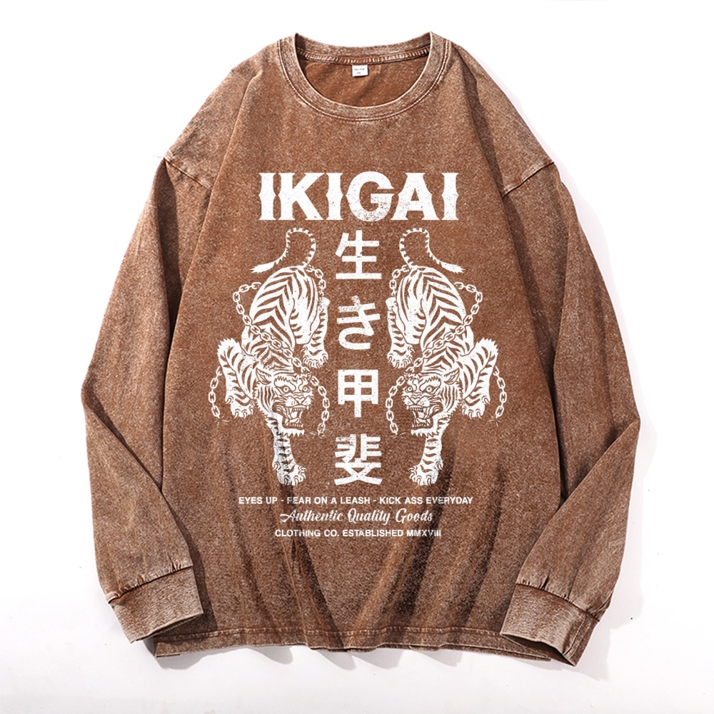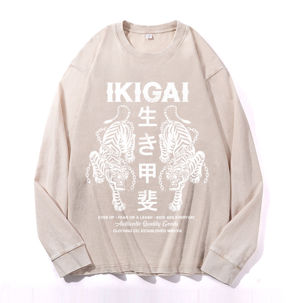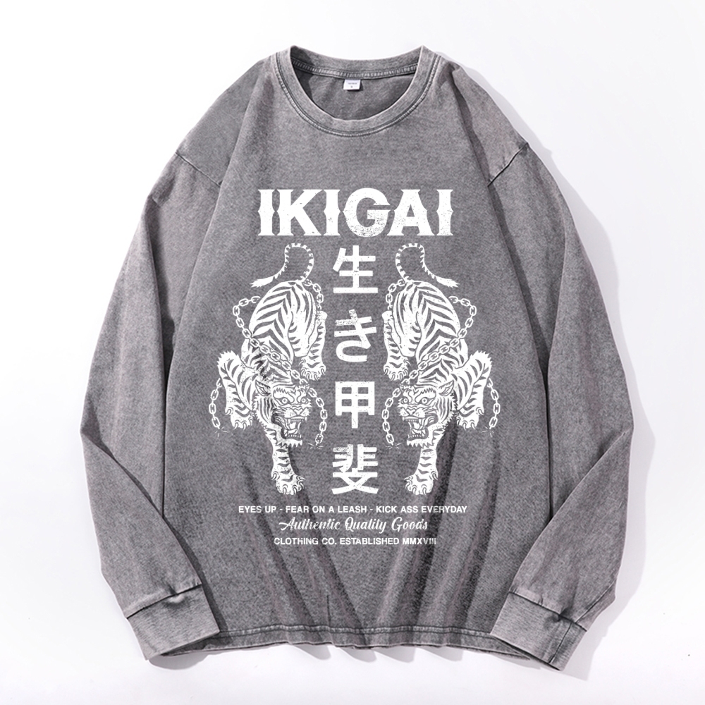Chain Tiger Pattern Deep Washed Vintage Long Sleeves T-Shirt