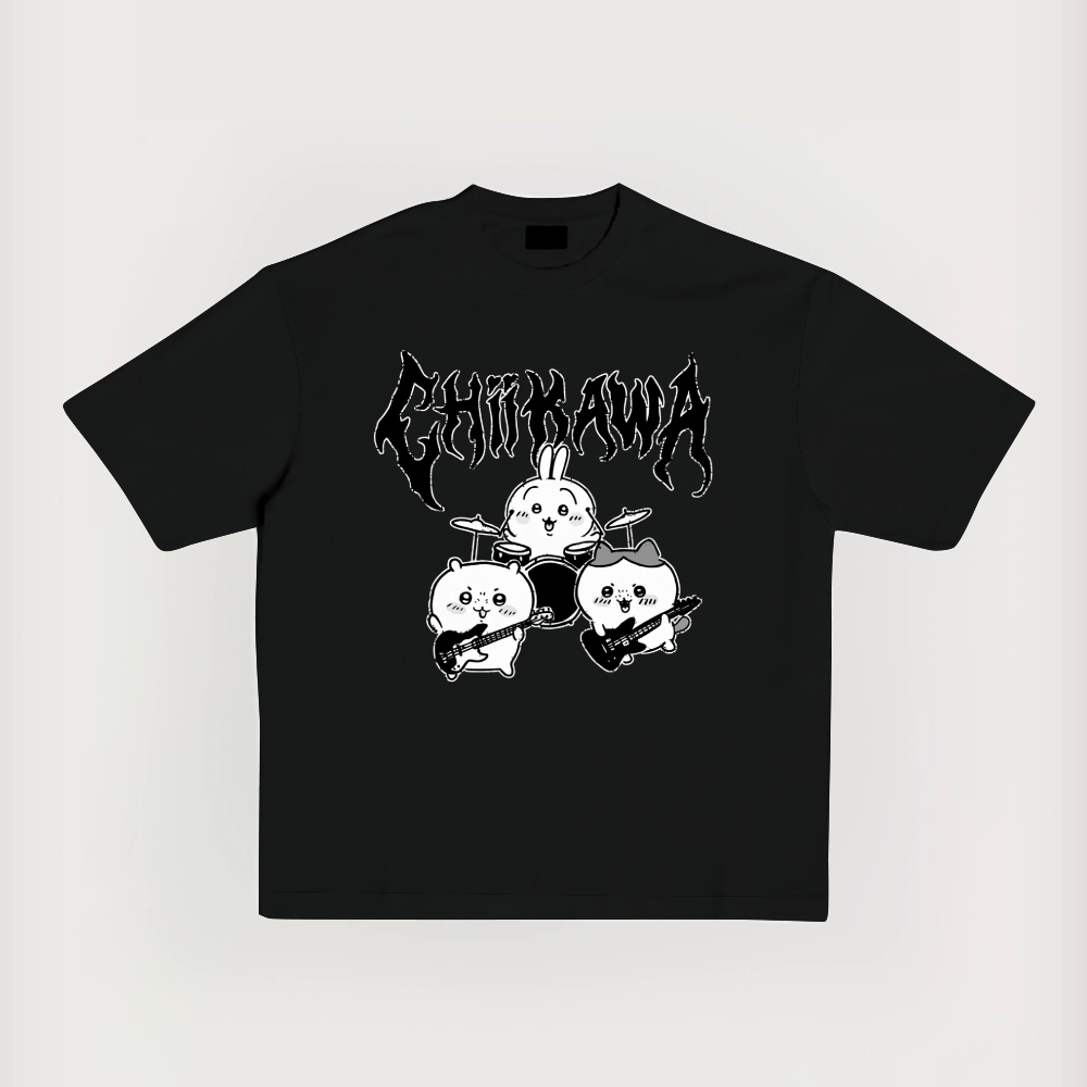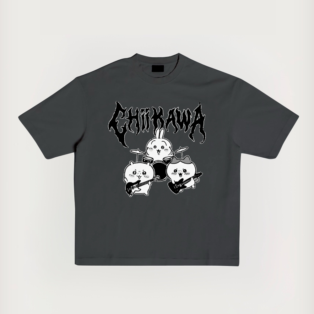 Chiikawa Band Drummer Printed Short-Sleeved T-Shirt
