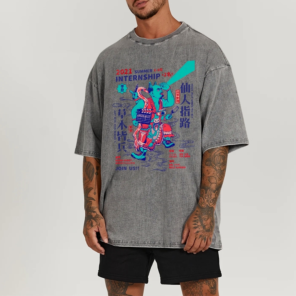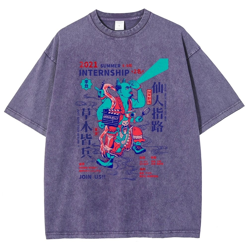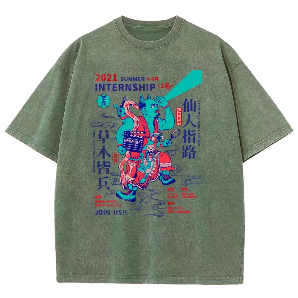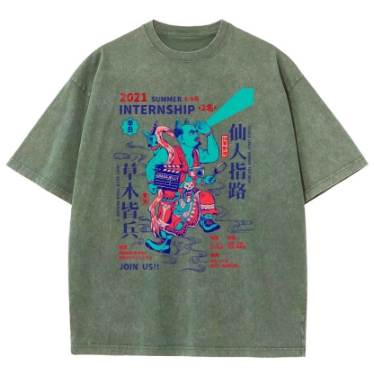 Chinese Ancient Deity Washed Vintage Short Sleeves T-Shirt