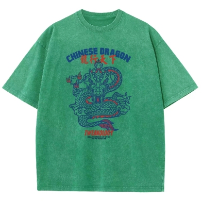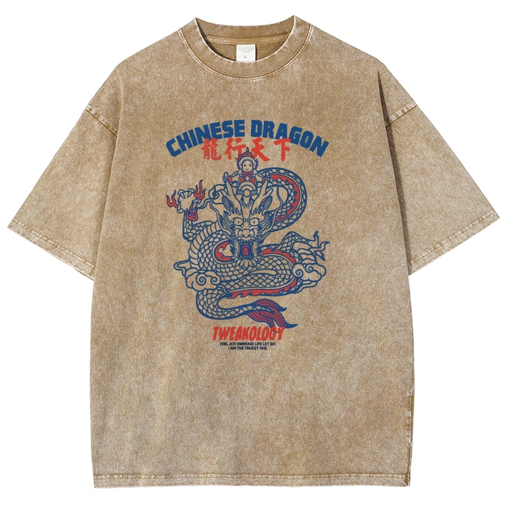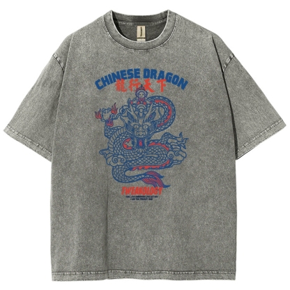 Chinese Dragon Washed Vintage Short Sleeves T-Shirt