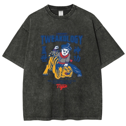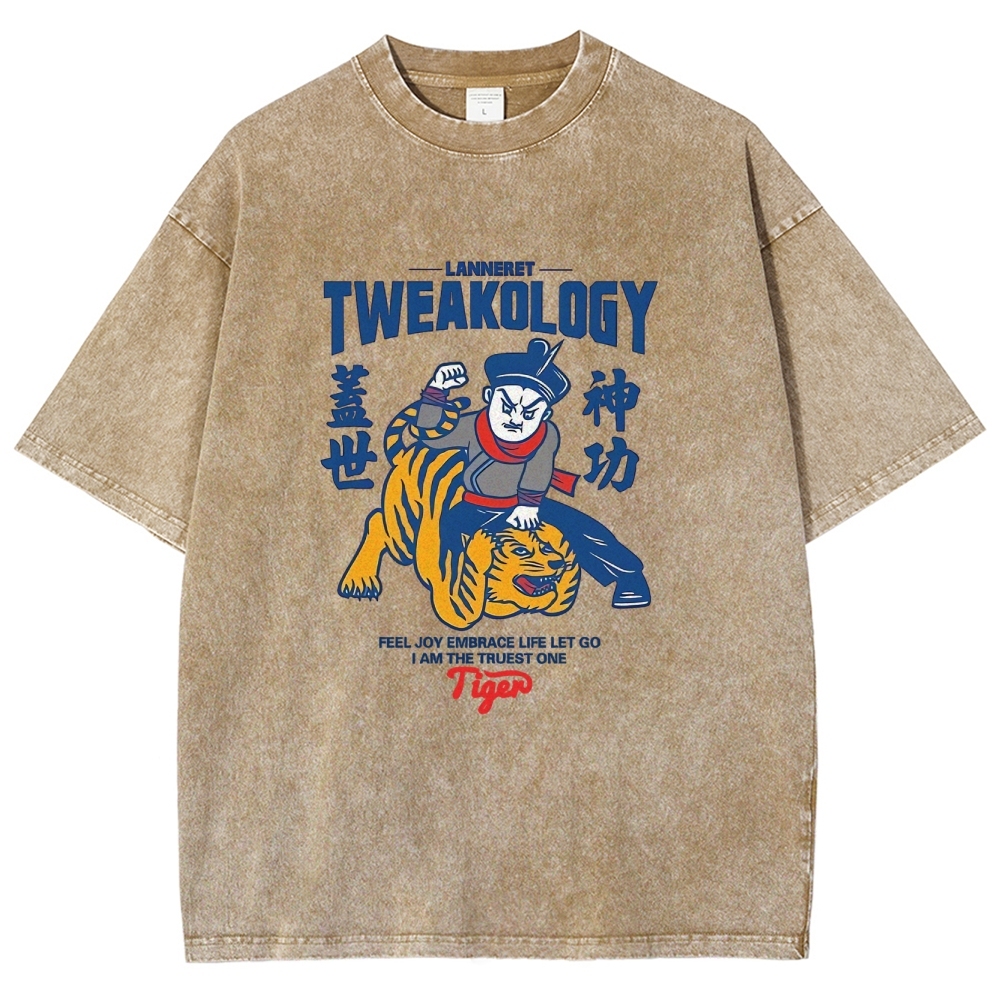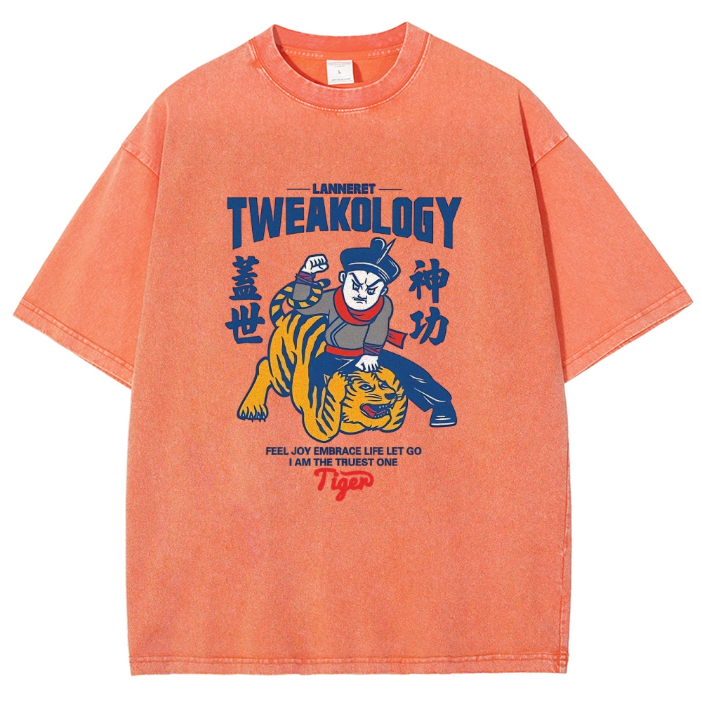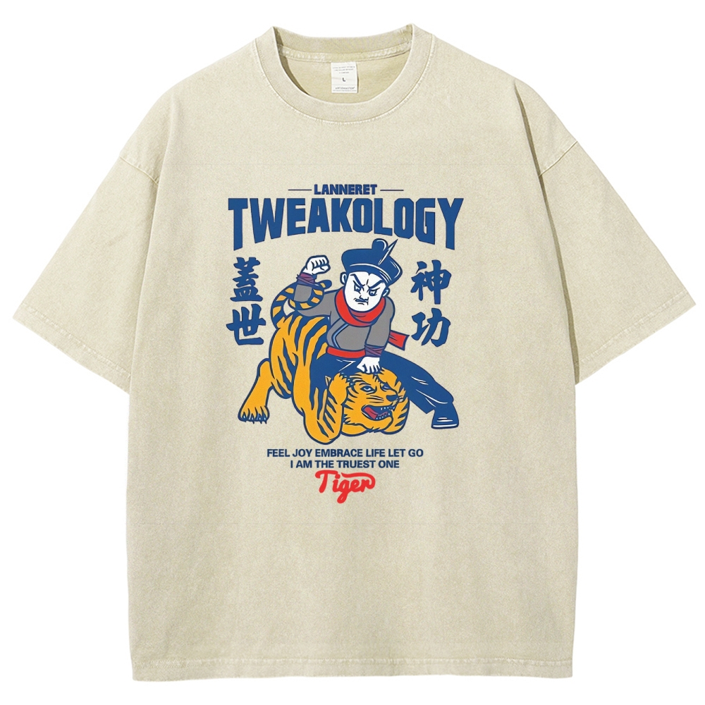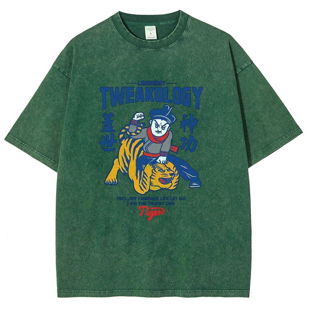 Chinese Kungfu Washed Vintage Short Sleeves T-Shirt