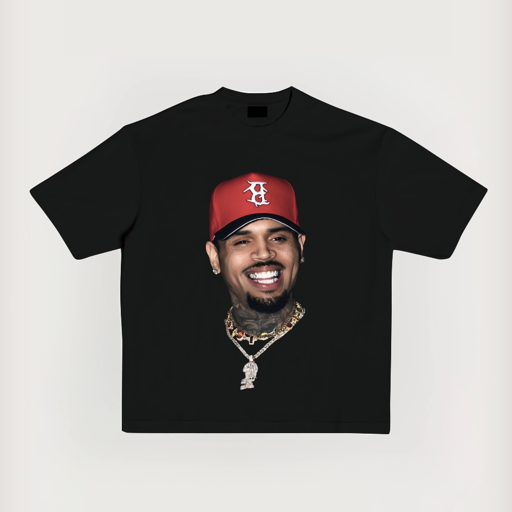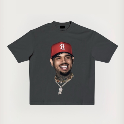 Chris Brown Big Face Printed Short-Sleeved T-Shirt
