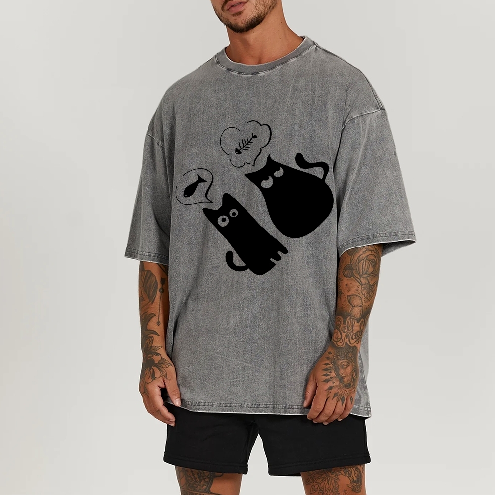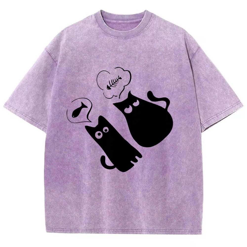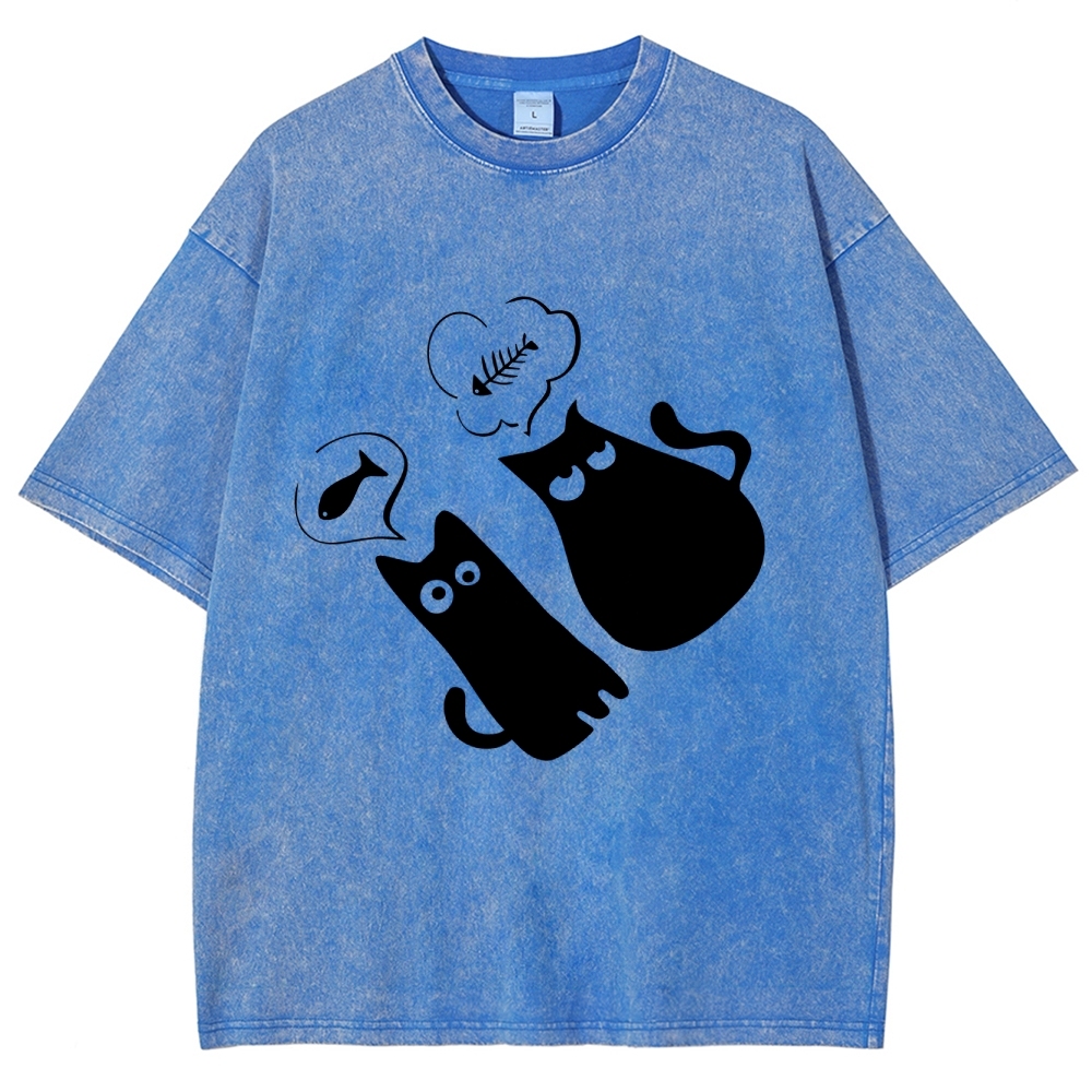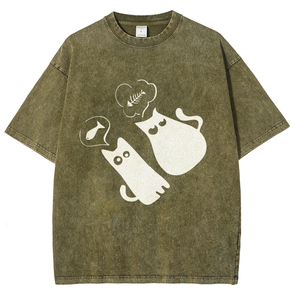 Cute Cat Washed Vintage Short Sleeves T-Shirt